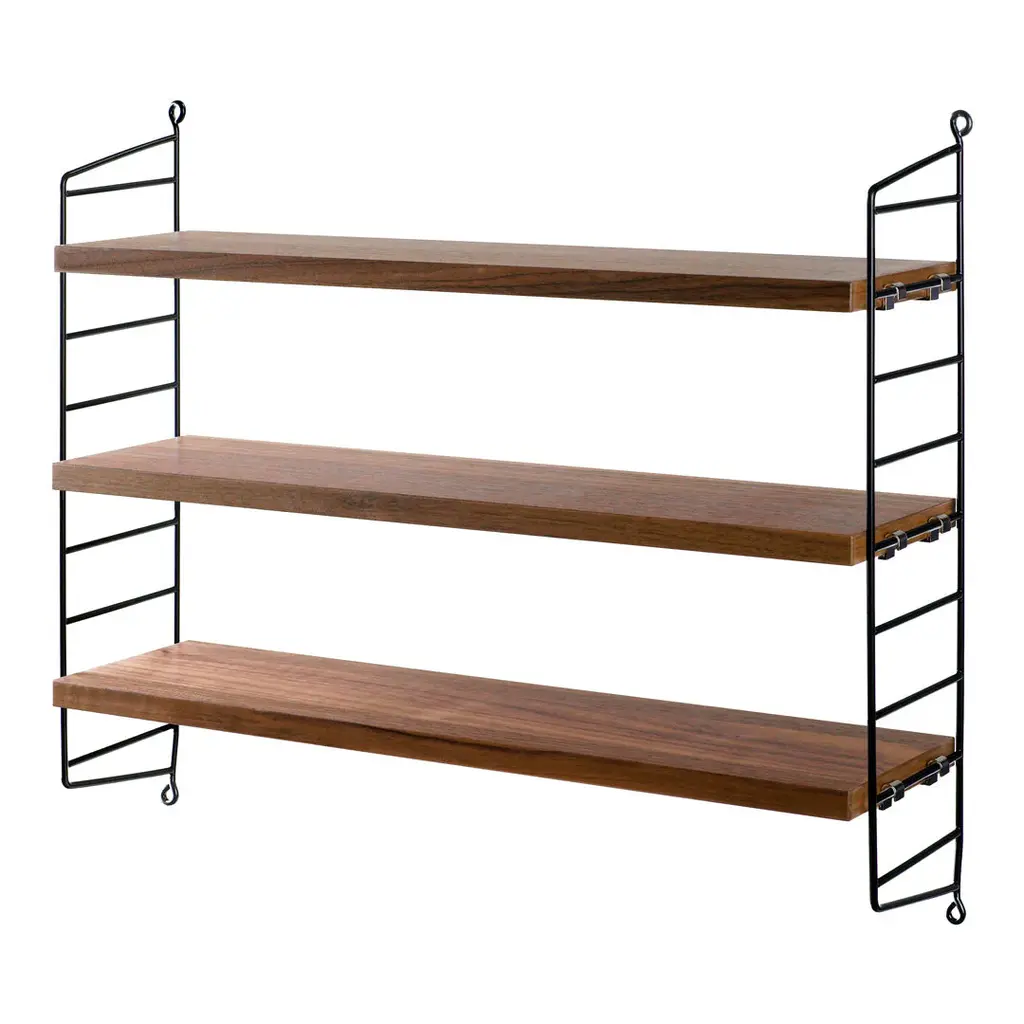 String® Pocket is sold as a complete shelf but is equally flexible as String® System. String® Pocket invites creativity and personality where you can combine two or three String® Pocket shelves into one larger shelf. Mix and match different colours and wooden alternatives to suit your style and preferences. Since the shelf is neat and practical it fits equally well as a nightstand as an extra shelf in your hallway. String® Pocket is sold as one complete unit containing two wire panels, height 50 cm, and three shelves, width 58 cm and depth 15 cm.
