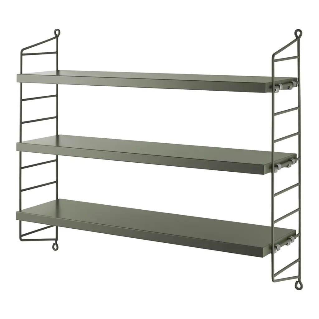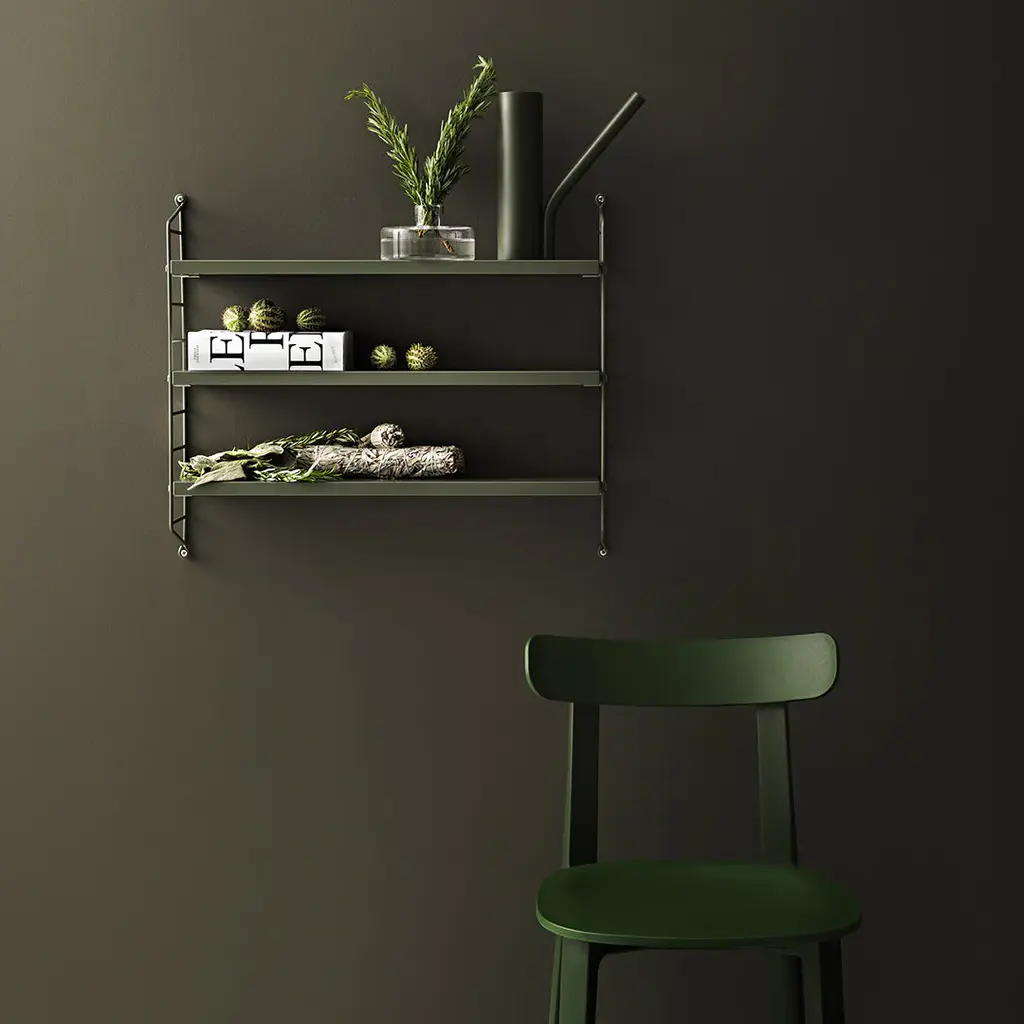 String® Pocket is sold as a complete shelf but is equally flexible as String® System. String® Pocket invites creativity and personality where you can combine two or three String® Pocket shelves into one larger shelf. Mix and match different colours and wooden alternatives to suit your style and preferences. Since the shelf is neat and practical it fits equally well as a nightstand as an extra shelf in your hallway. String® Pocket is sold as one complete unit containing two wire panels, height 50 cm, and three shelves, width 58 cm and depth 15 cm.