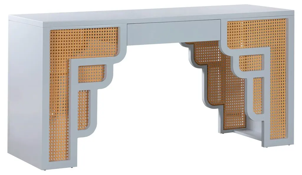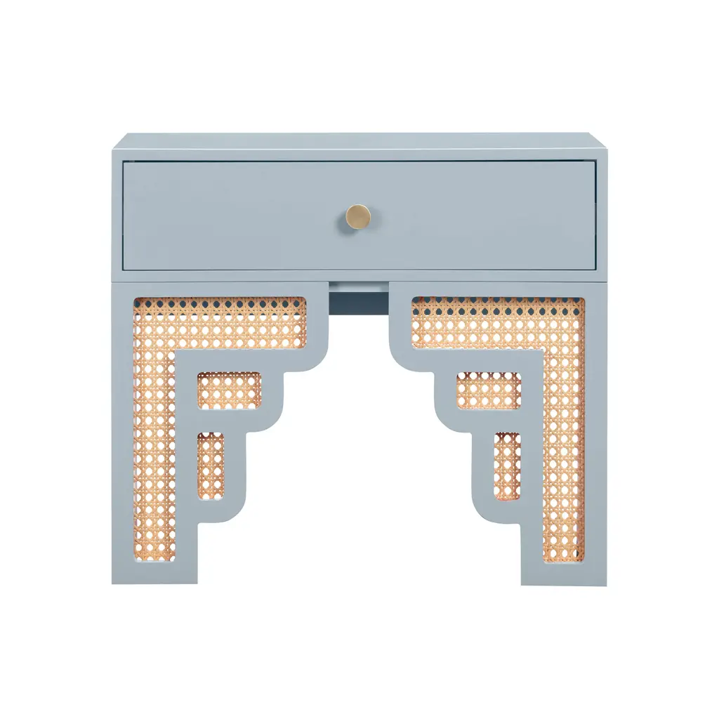 Inspired by the Art Moderne style, the Suzie Nightstand alludes to Palm Springs' art-deco design through its bold colors and curvaceous form. This wooden nightstand features a soft close drawer for practicality; while its rounded edges and woven rattan details add a playful twist. The Suzie will cement itself as the perfect balance between contemporary living with a touch of glamour in your space!