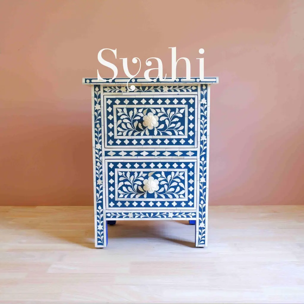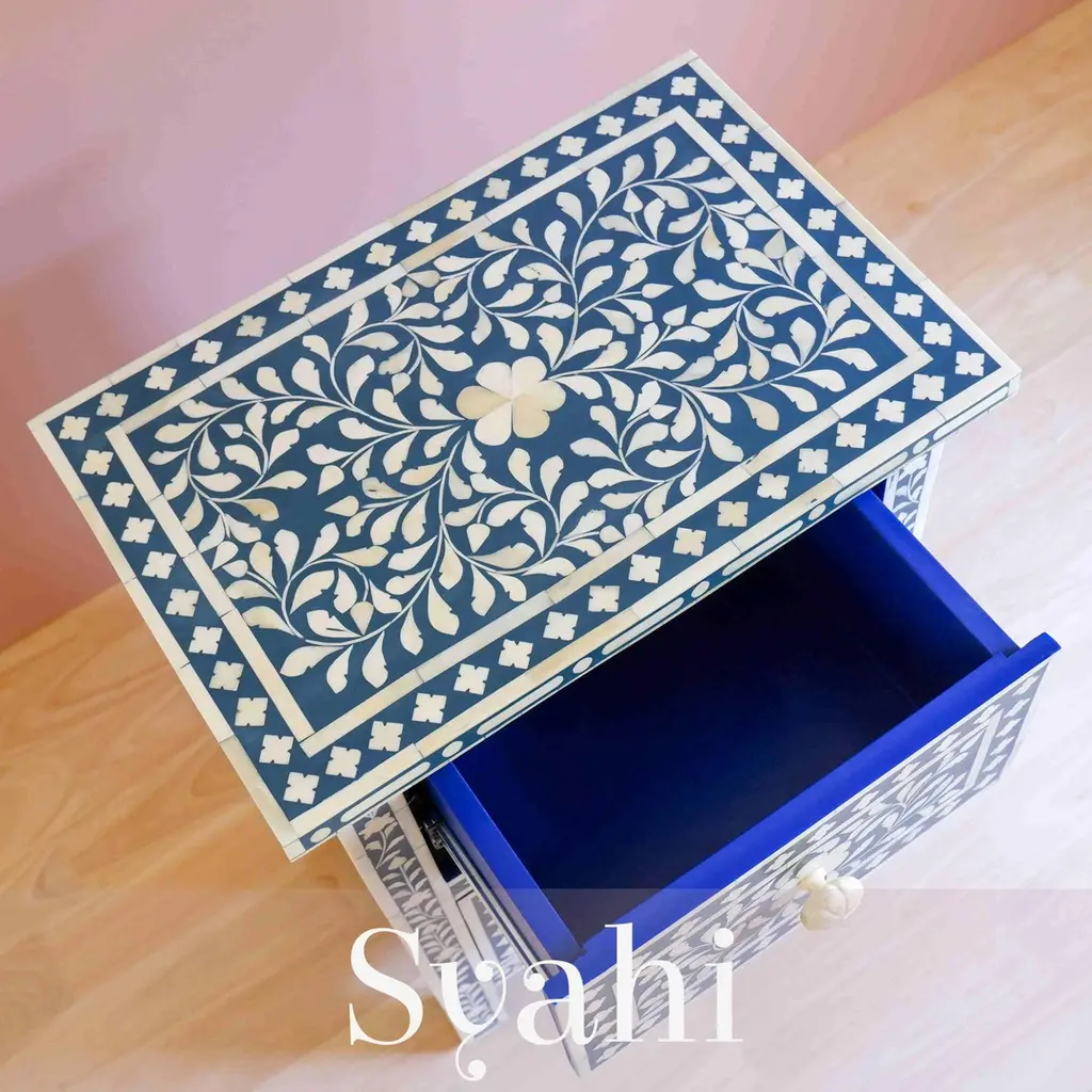 Syahi Handmade Navy Blue Indian Nightstand