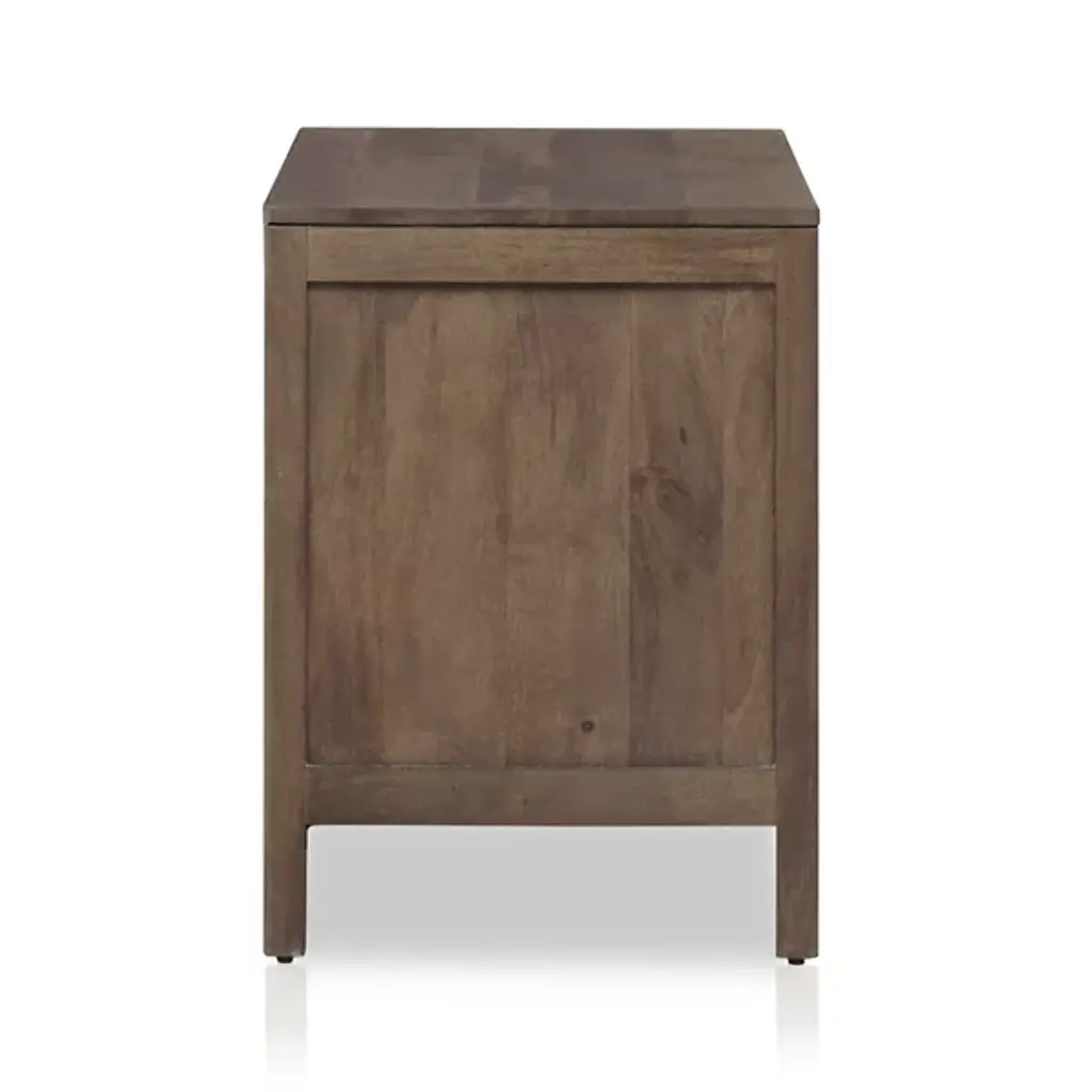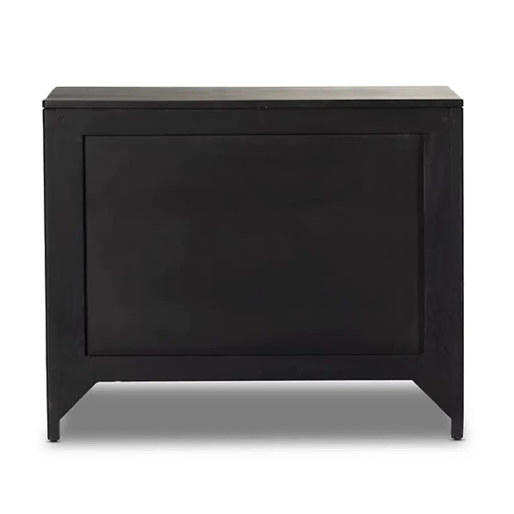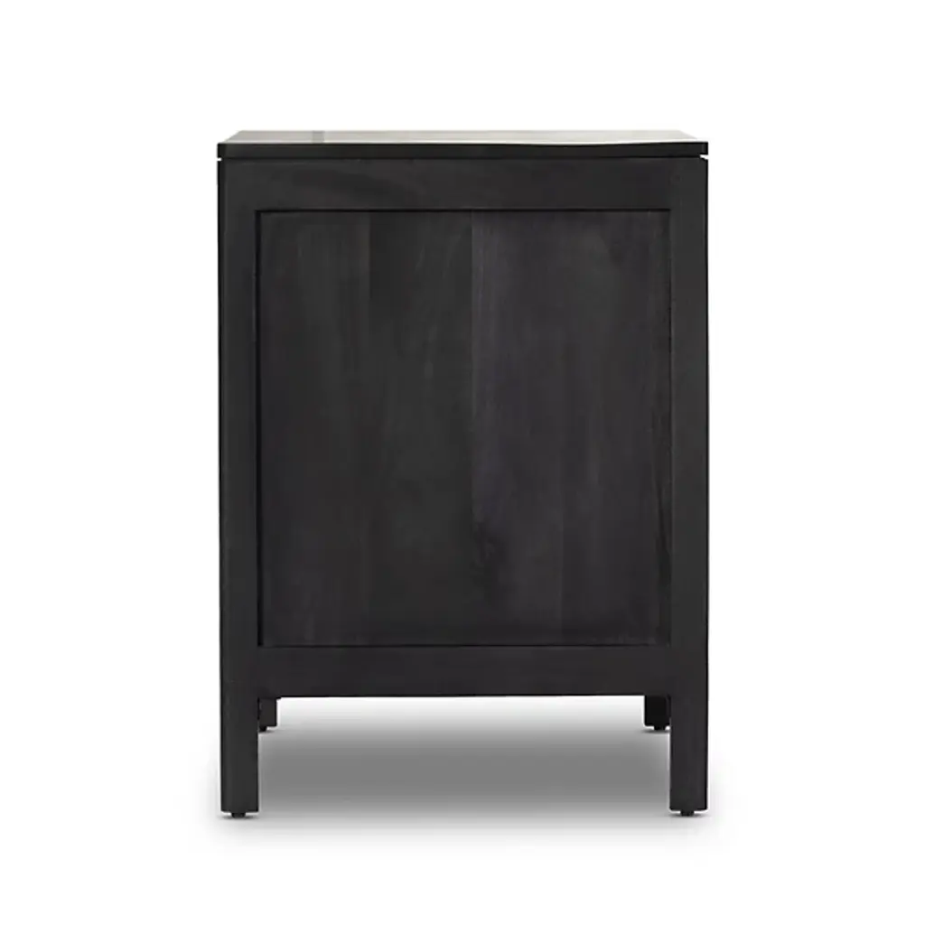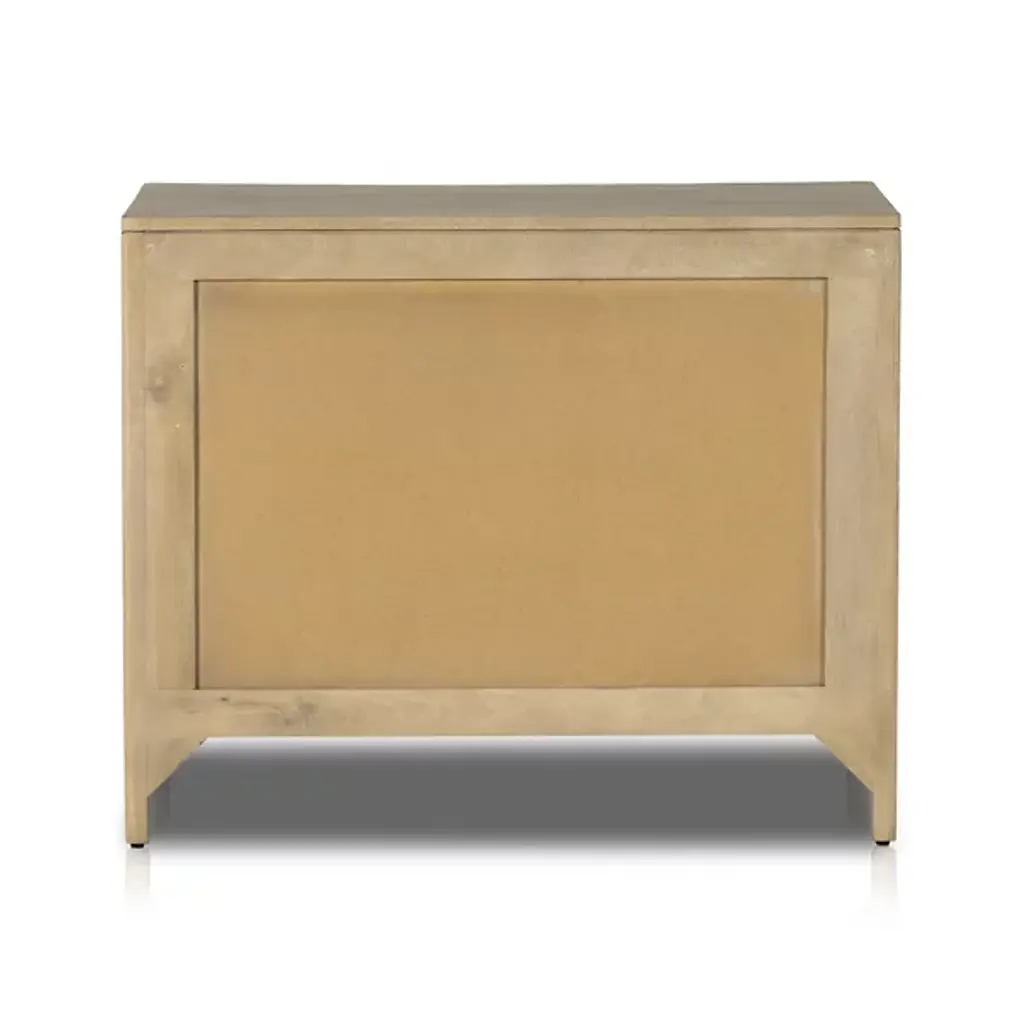 The Sydney Large Nightstand from Four Hands adds texture and convenience to one’s bedside with a refined coastal feel. The piece proudly showcases its craftsmanship and materials with a geometric design. Its framework is crafted from mango wood for a solid feel. The wood also shapes the comfortable pulls of each drawer. The facade of these drawers displays an intricate weave of natural cane for an extra dose of organic texture.