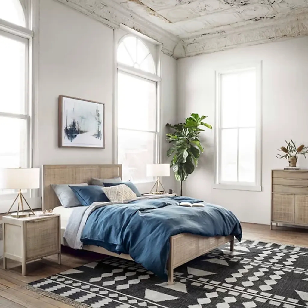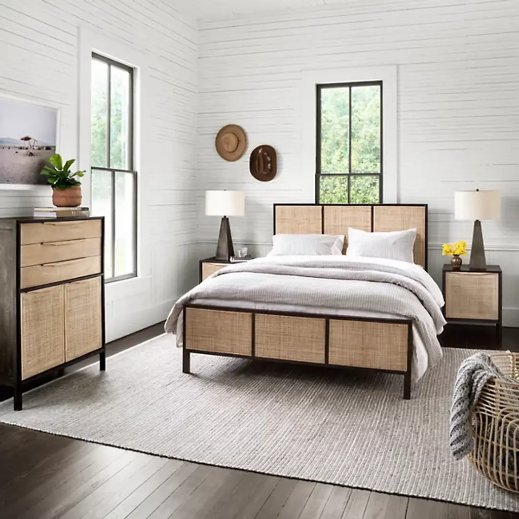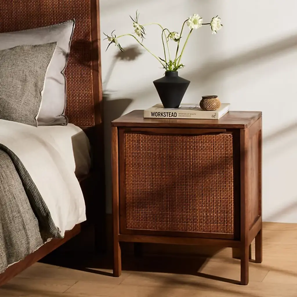 Craftsmanship, convenience, and coastal vibes define the Sydney Nightstand from Four Hands. It’s an easy choice alongside the bed as it sports a minimal silhouette and a compact construction. Its mango wood frame adds a touch of warmth to the bedroom. The door’s face catches the eye with the fine texture of its natural cane weave. The interior reveals a removable shelf to place nighttime essentials.