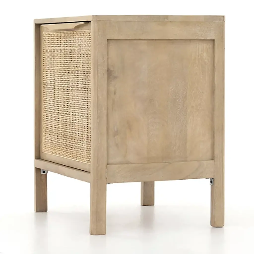 Craftsmanship, convenience, and coastal vibes define the Sydney Nightstand from Four Hands. It’s an easy choice alongside the bed as it sports a minimal silhouette and a compact construction. Its mango wood frame adds a touch of warmth to the bedroom. The door’s face catches the eye with the fine texture of its natural cane weave. The interior reveals a removable shelf to place nighttime essentials.