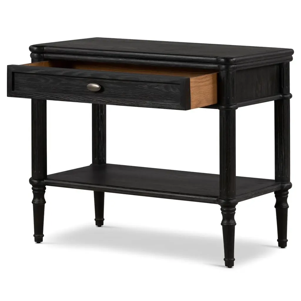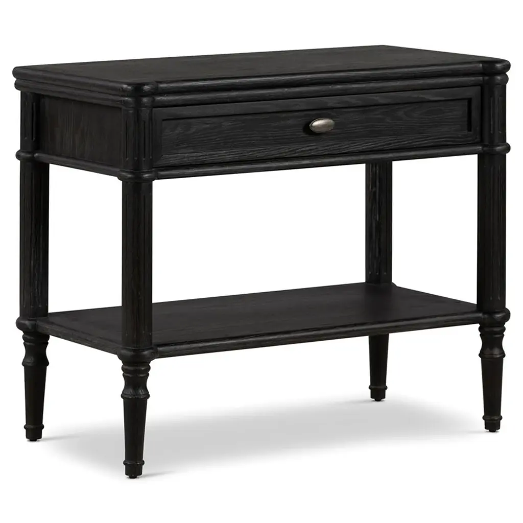 Tacorey Rustic Lodge Black Solid Oak Wood 1 Drawer Nightstand