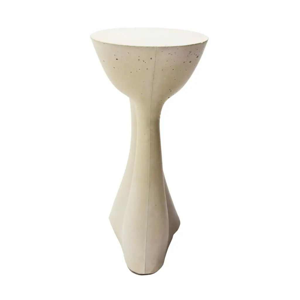 Industrial, organic and sculptural, the Kreten side tables are concrete furniture like you haven’t seen before. Original pieces are created in Souda's Brooklyn studio by casting concrete into a spandex mold. The unique material combination delivers forms that are sure to make a statement in interiors and exteriors alike.This listing is for a single tall grey table. See our other listings for additional sizes/colors.The bases of the tables are finished with Industrial felt so they can be used indoors or outdoors.