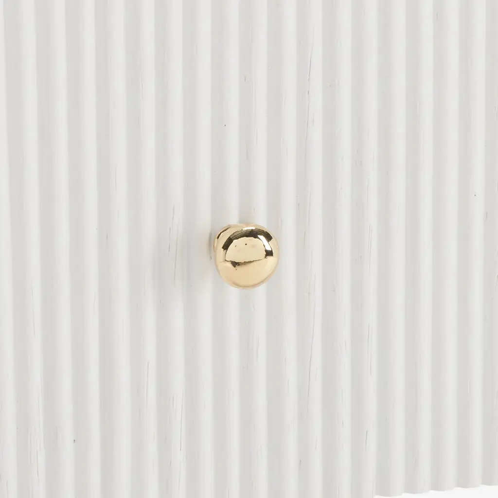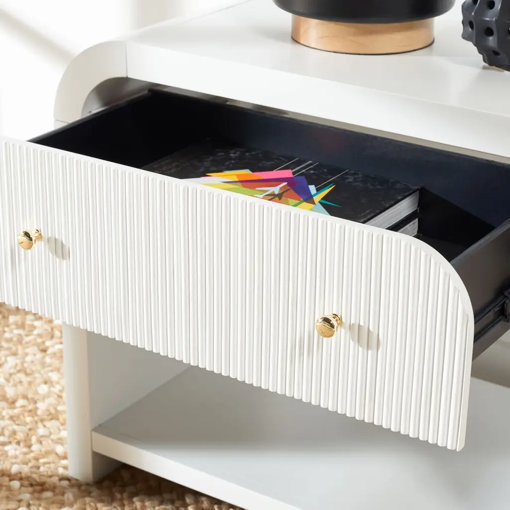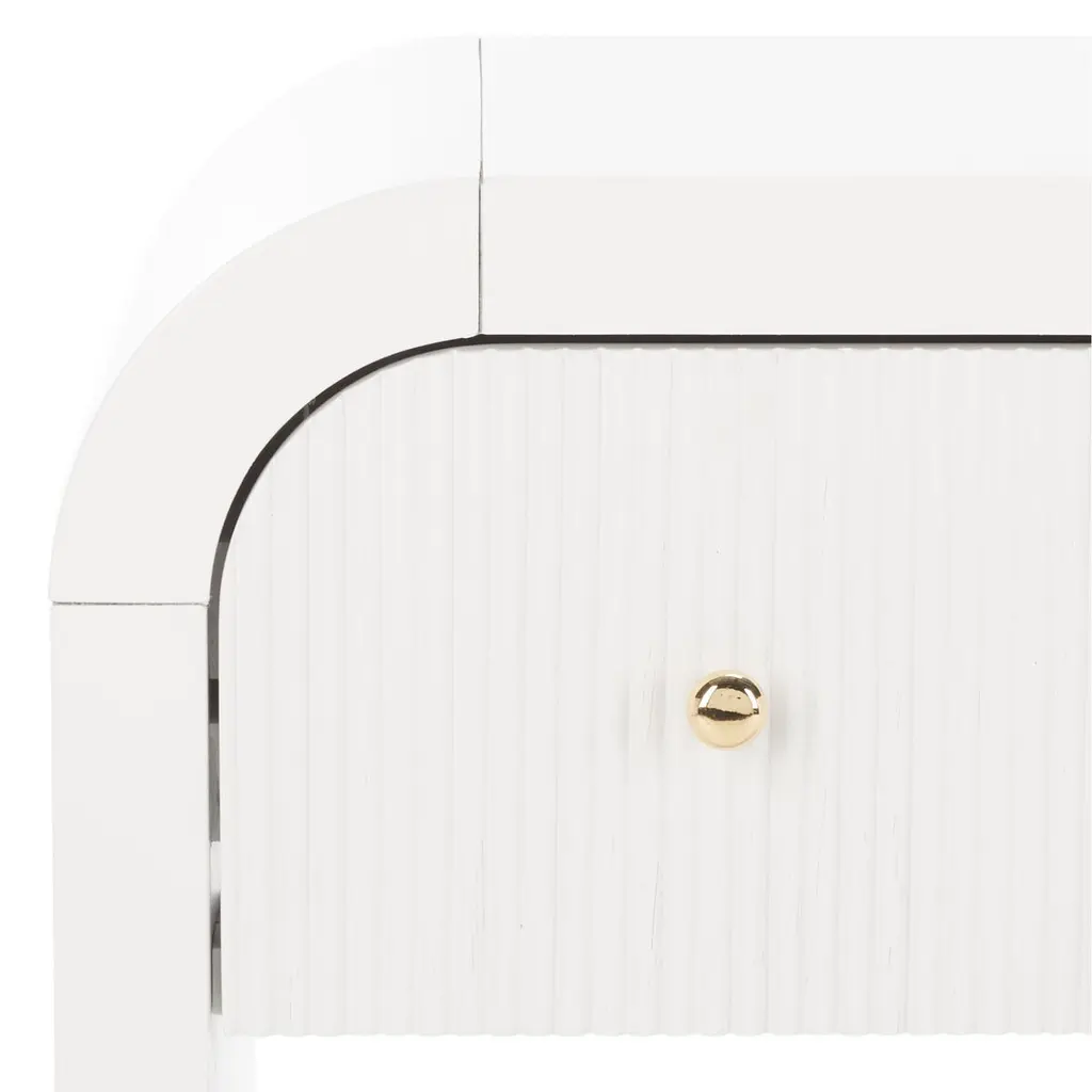 Bring sophistication and a refined touch of glam to your bedside with our Tansy nightstand. With a sleek airy profile and elevated details, our nightstand feels elegant and graceful in any setting. It stands out with a curved waterfall edge to lend an inviting and effortless look to your bedroom. A stunning ribbed texture on the facade and round gold pulls elevate the style and elegance of our nightstand. It features a roomy drawer and an open cabinet to keep your nighttime essentials organized and within easy reach.