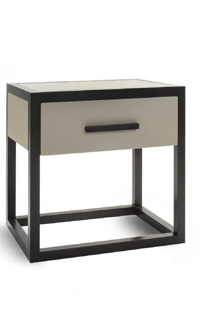 Textured faux leather and solid Ash work in harmony to create this modern nightstand. The cubed frame gives substance and with a generous drawer, the Roux is a perfect storage piece for living or bedroom.(When placing directly onto carpet, please use a continuous adhesive strip felt pad underneath the wooden frame to protect the carpet. Felt is not provided).