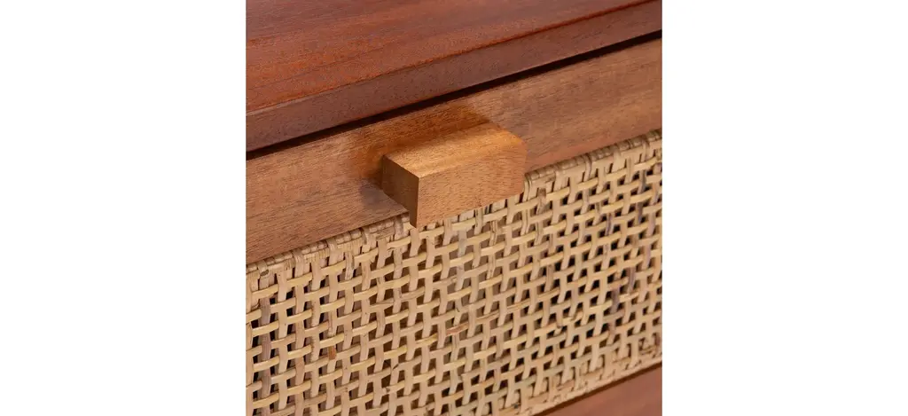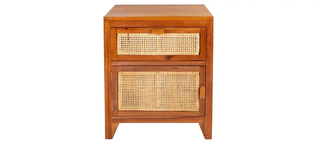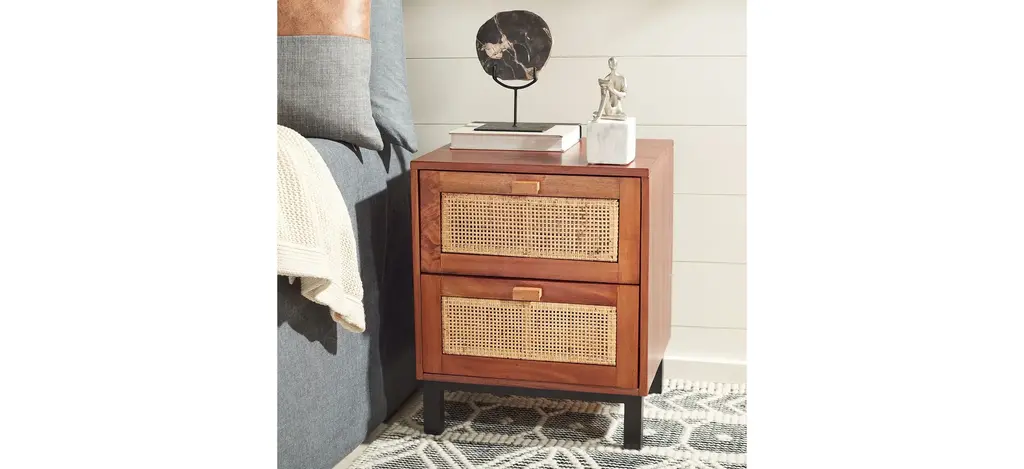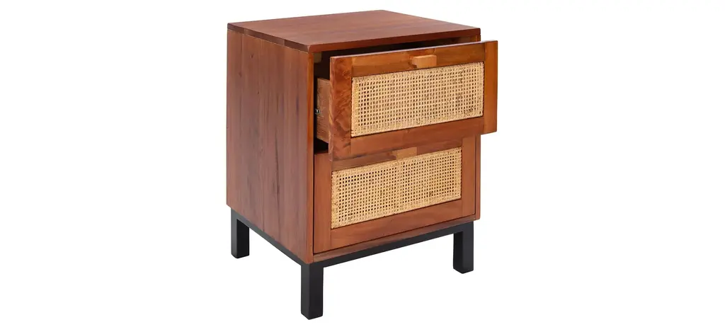 Oceanside ambiance comes to bedroom d_cor in this Tegan Nightstand. Tegan's d_cor smart pairing of natural wood and rattan with sleek black legs makes it an icon of design fusion, while its two drawers provide ample bedside storage.