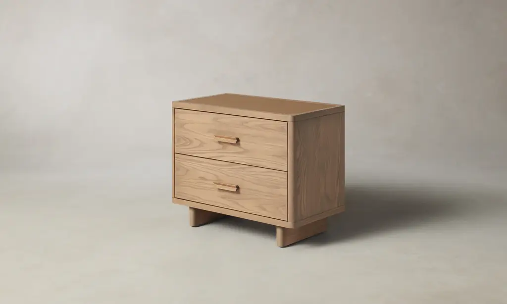 The Clinton 2-Drawer Nightstand - Pecan Ash / Tuscan Leather Camel