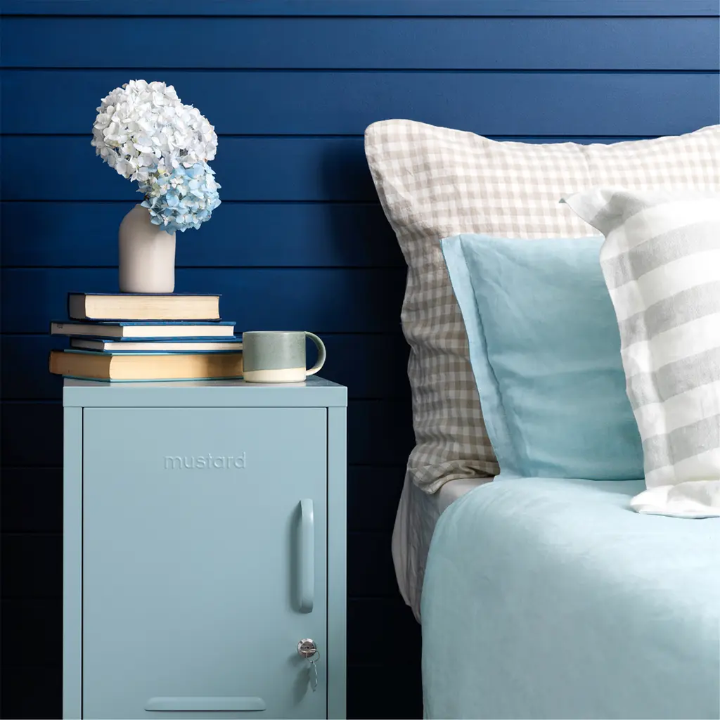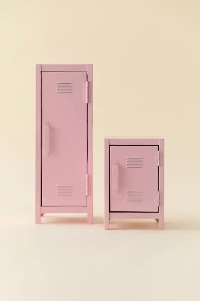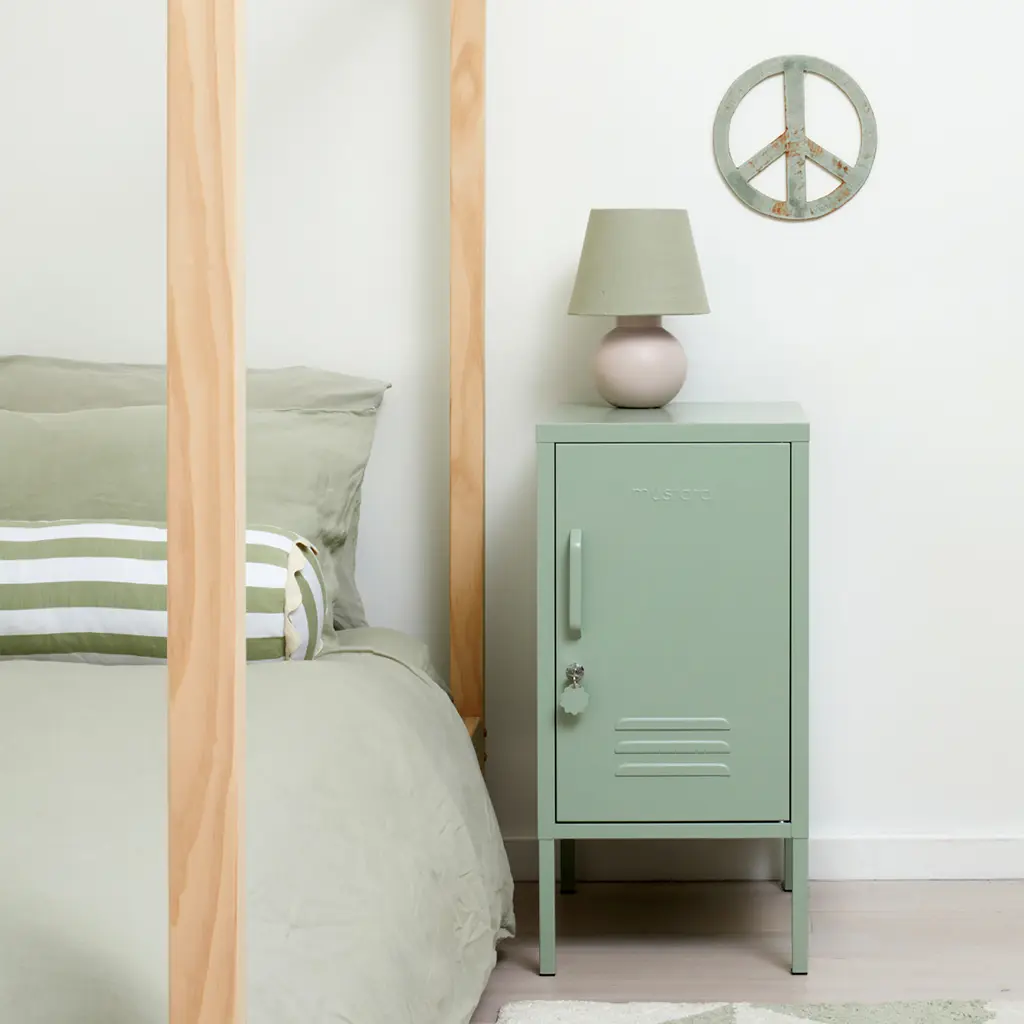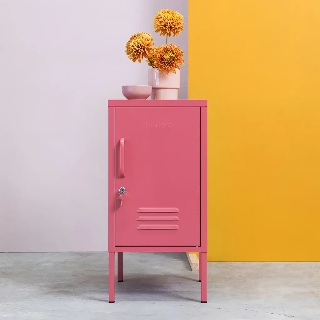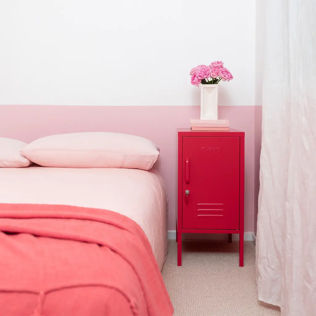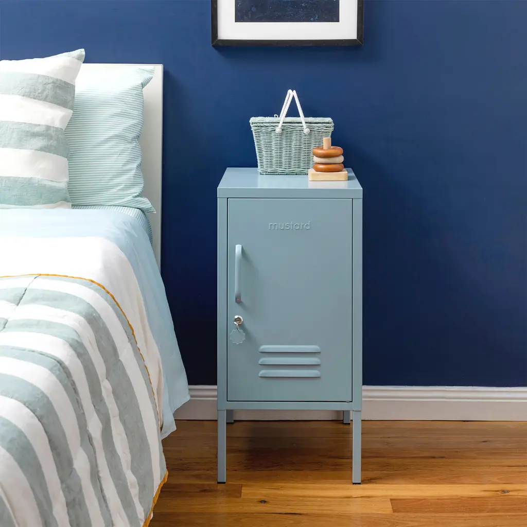 Compact, practical and beautiful, Mustard Made’s Shorty locker is the perfect metal night stand table. The lower height makes this metal locker ideal for bedrooms, but you can also use it in a living room by a sofa or in an office close to your desk. Right and left openings allow you to place the cabinet on any side of the bed and access the contents with ease. The curved handle offers a comfortable grip, while the lock with a custom keyring helps you keep your stuff secure at all times. Inside, the Shorty nightstand features two adjustable shelves, a hook, and one opening for cable management. Air vents ensure that the interior is always properly ventilated. Made from powder-coated steel, the Shorty Bedside Locker is durable and magnetic. Like other lockers from the Mustard Made collection, it comes in an array of colors that range from vibrant to pastel and muted, to suit any décor.