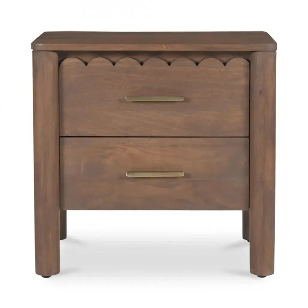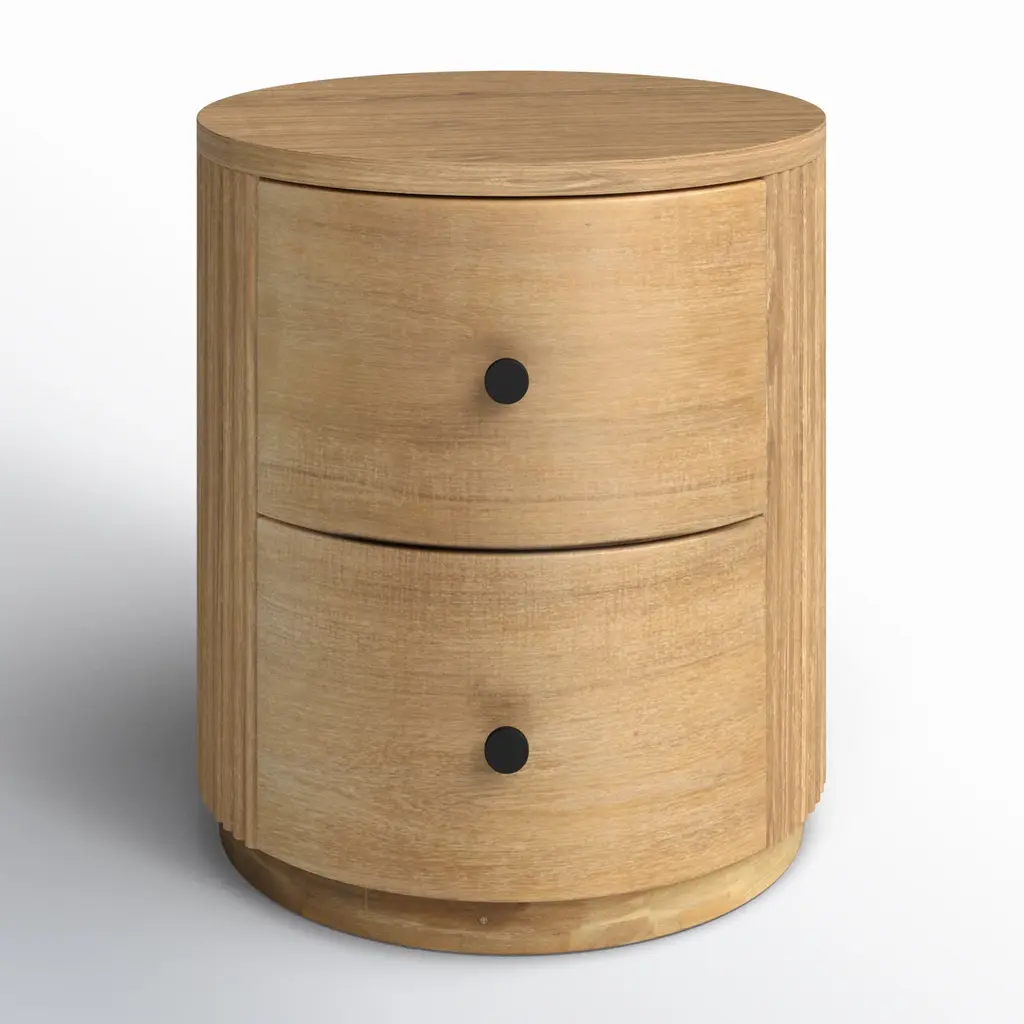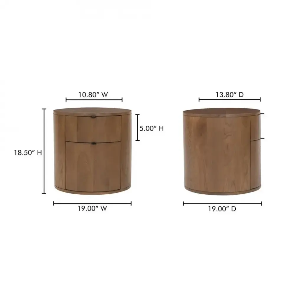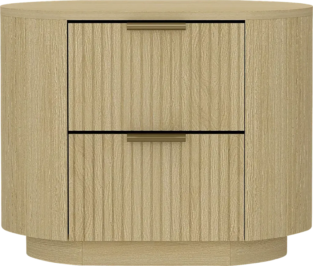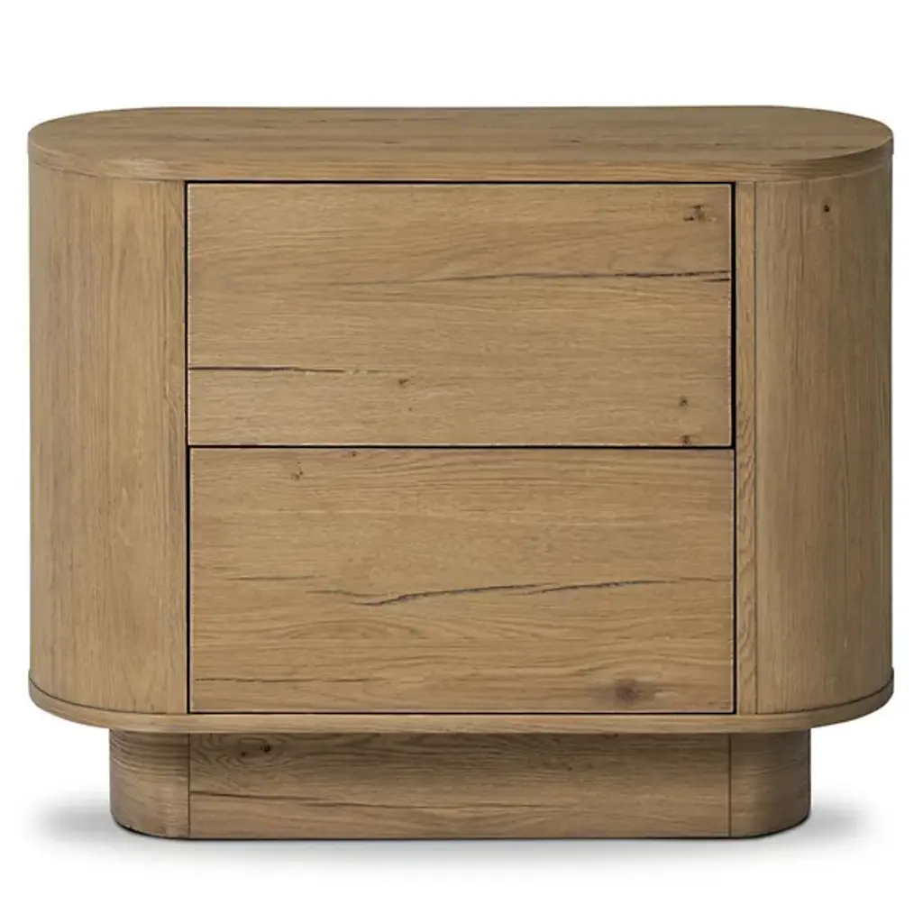 Full of natural appeal in solid oak, the Theo two drawer nightstand features a curved, minimalist design. Beautifully simple and functional, this nightstand features 2 drawers with soft-close glides and drawer safety stop.