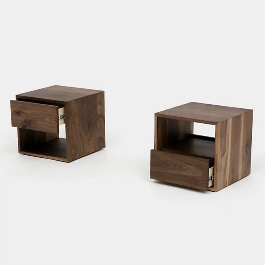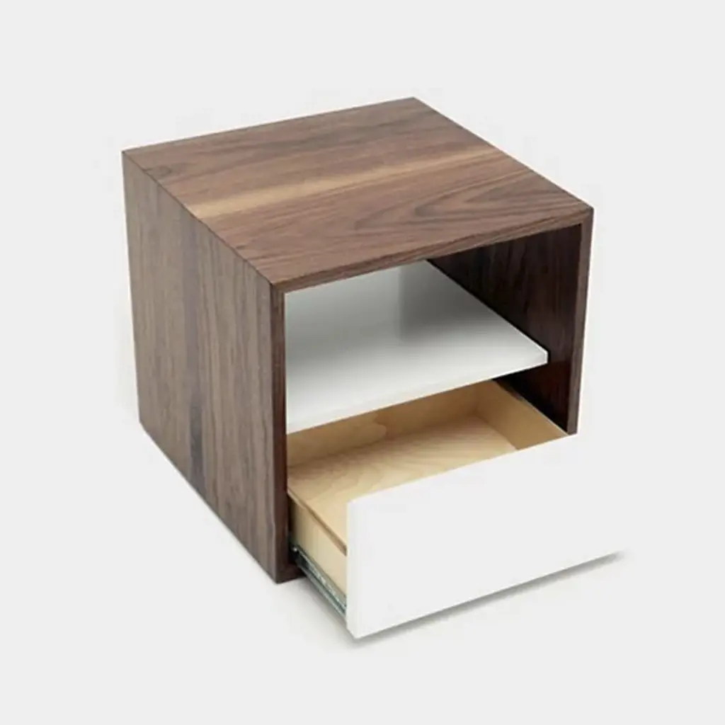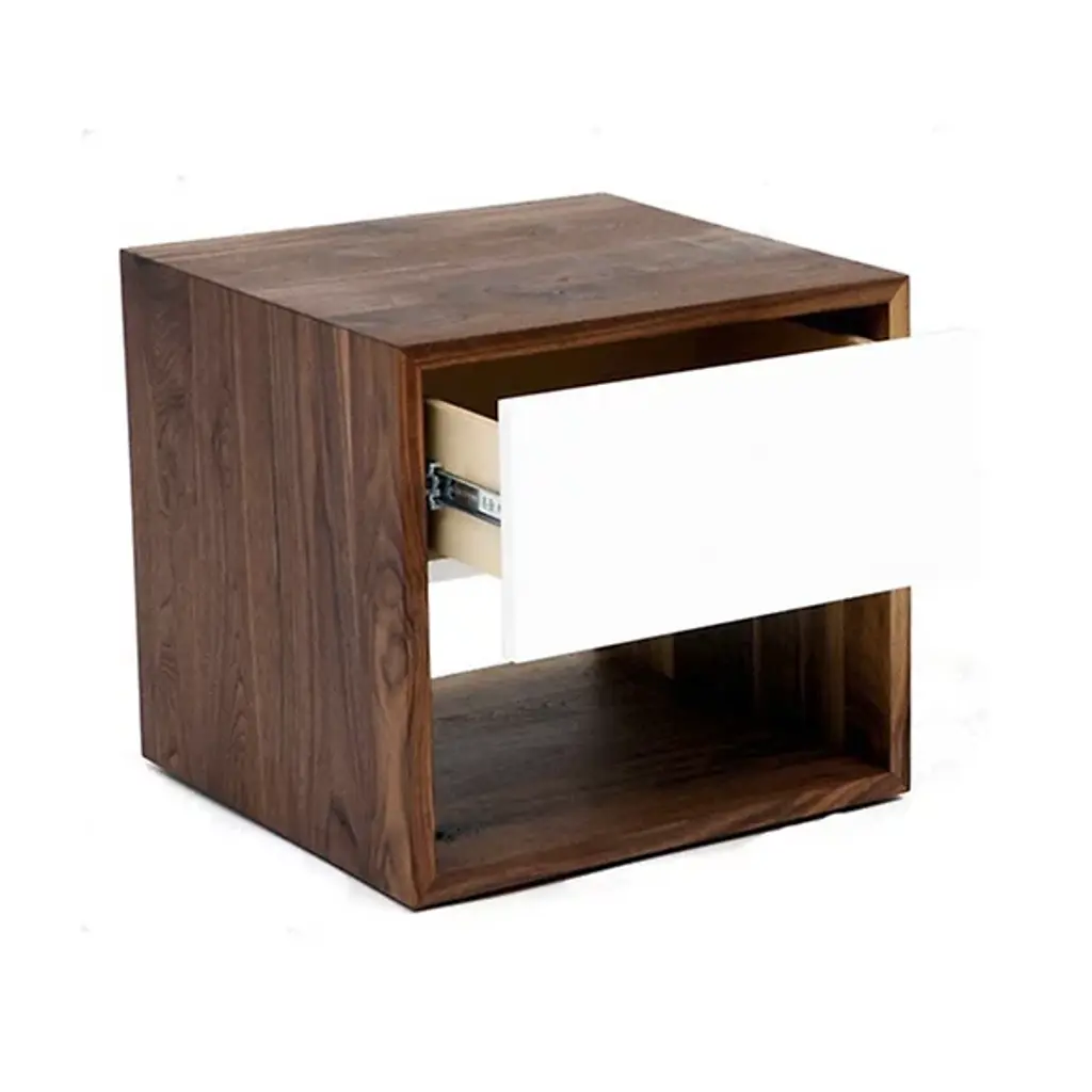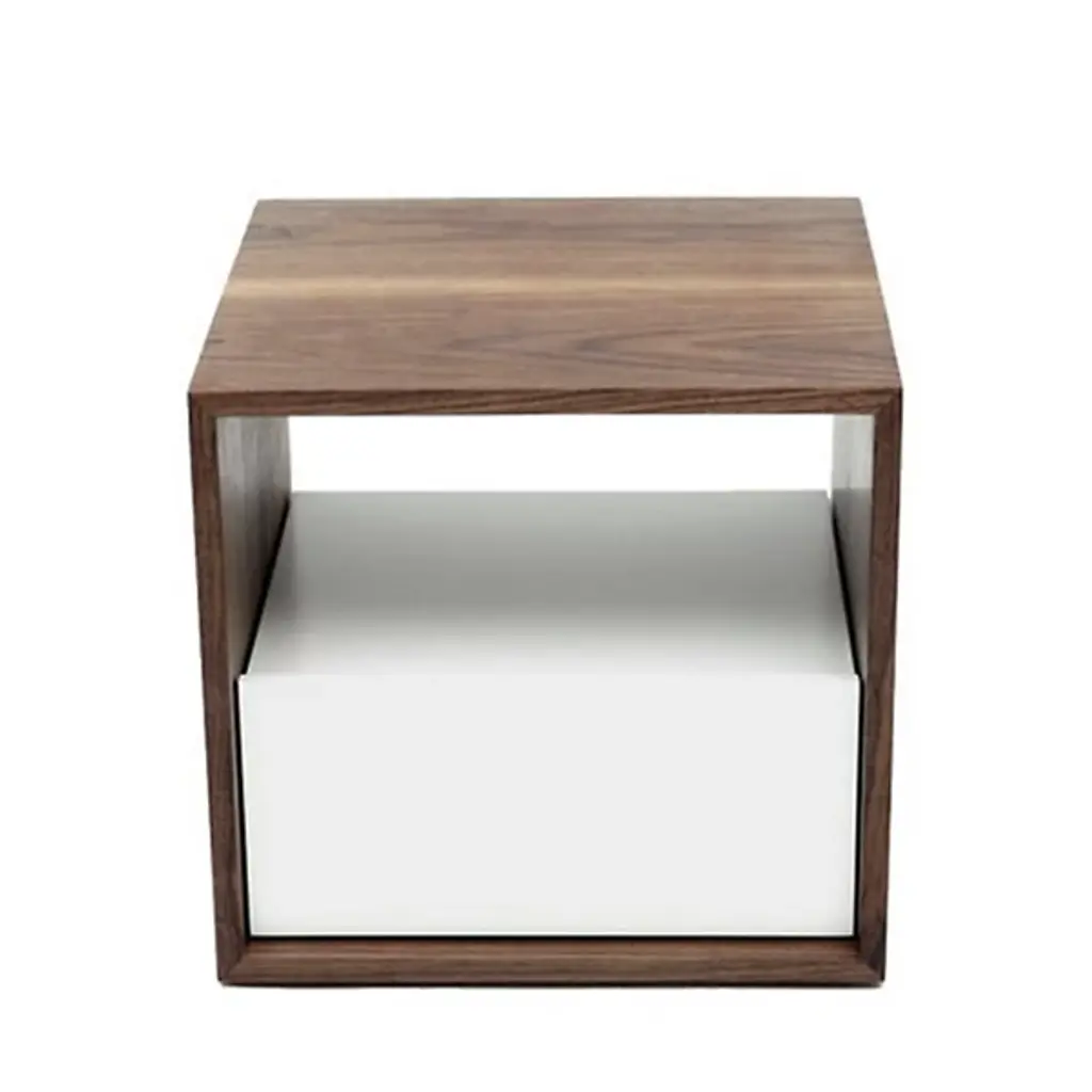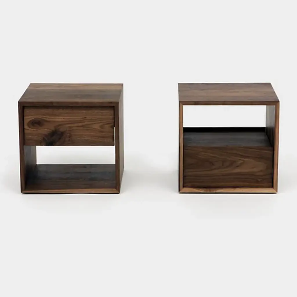 The THN .75 Nightstand speaks to the minimalist style that is found at the heart of all ARTLESS designs. Standing at 17 inches high, this low nightstand features the combination of solid walnut and contrasting white lacquer. The drawer sits low to the floor, allowing the open space to act as a functional shelf. THN .75 Nightstand is crafted with a 1-inch walnut frame, lacquered drawer box, Baltic birch plywood drawer, and an easy close drawer. The Nightstand comes in two options, with either a drawer on the top or the bottom. ARTLESS strives to keep the wood used in our products in its most natural state, solid wood may exhibit slight variations in color and texture. Each piece is unique.