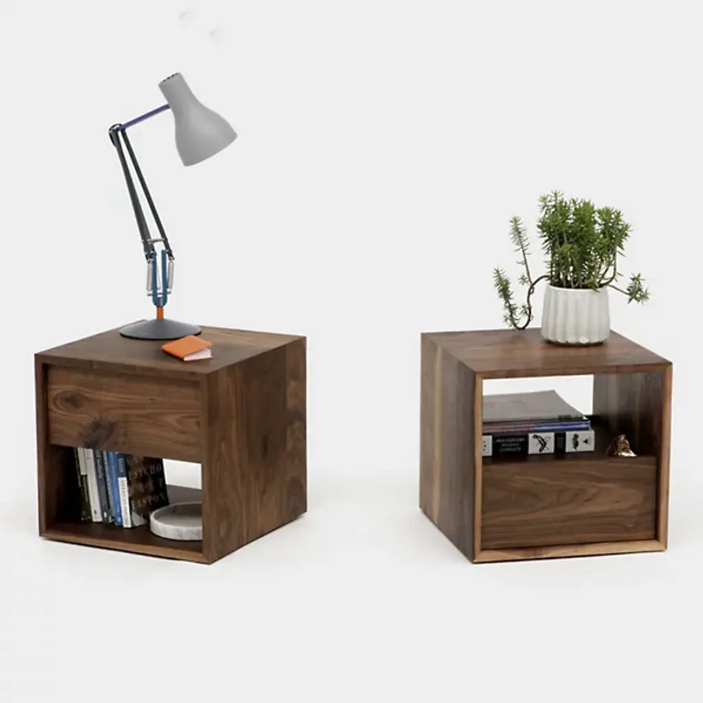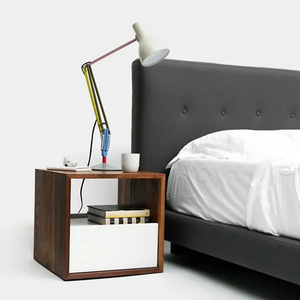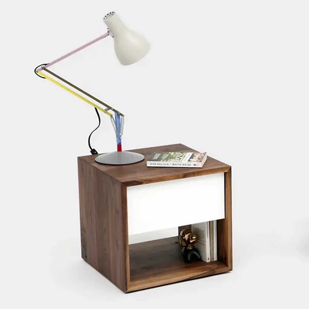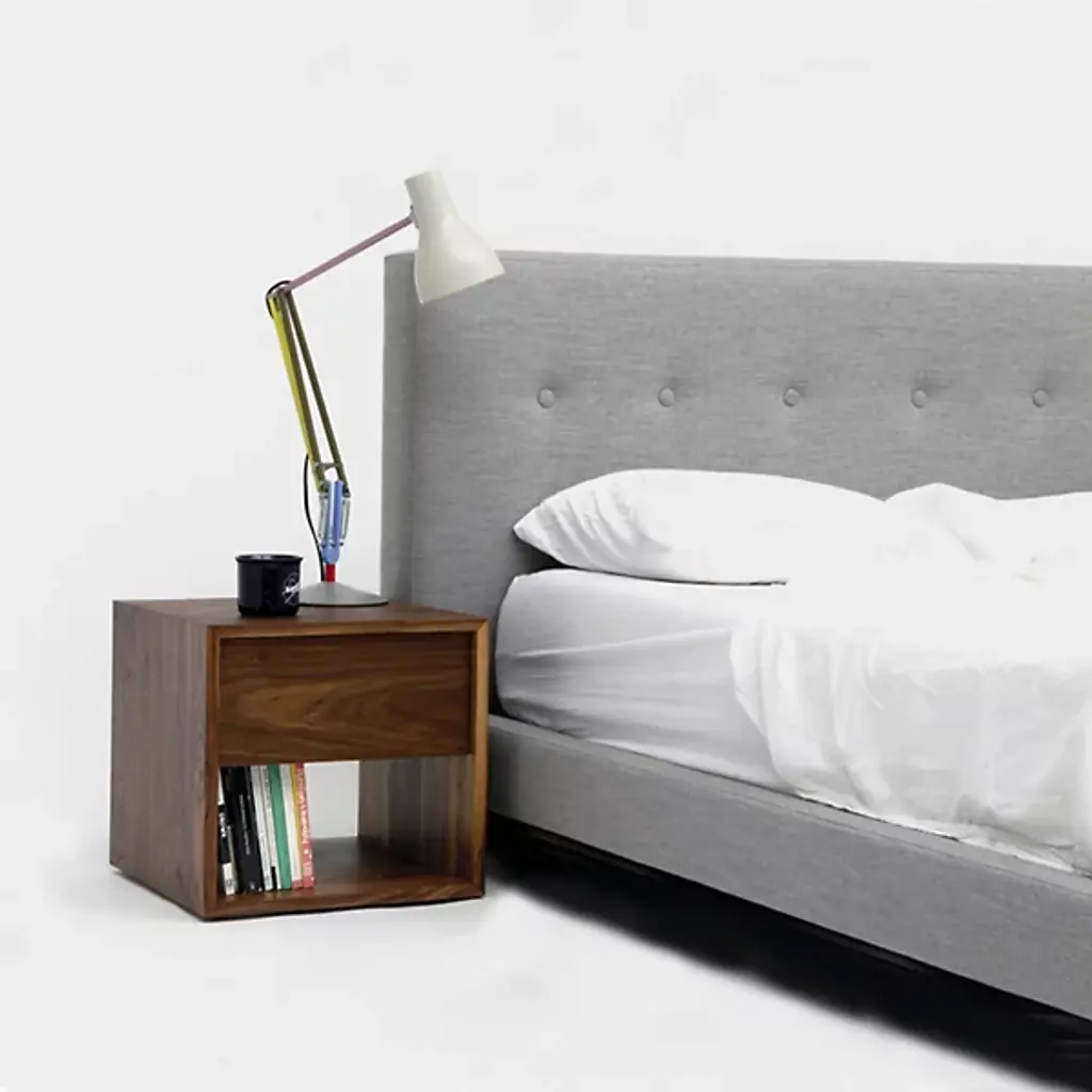The THN .75 Nightstand speaks to the minimalist style that is found at the heart of all ARTLESS designs. Standing at 17 inches high, this low nightstand features the combination of solid walnut and contrasting white lacquer. The drawer sits low to the floor, allowing the open space to act as a functional shelf. THN .75 Nightstand is crafted with a 1-inch walnut frame, lacquered drawer box, Baltic birch plywood drawer, and an easy close drawer. The Nightstand comes in two options, with either a drawer on the top or the bottom. ARTLESS strives to keep the wood used in our products in its most natural state, solid wood may exhibit slight variations in color and texture. Each piece is unique.