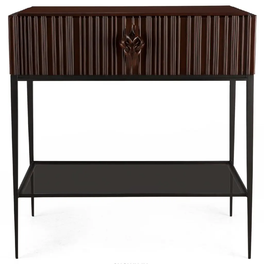 Thomas Nightstand In Carved Solid Mahogany Wood