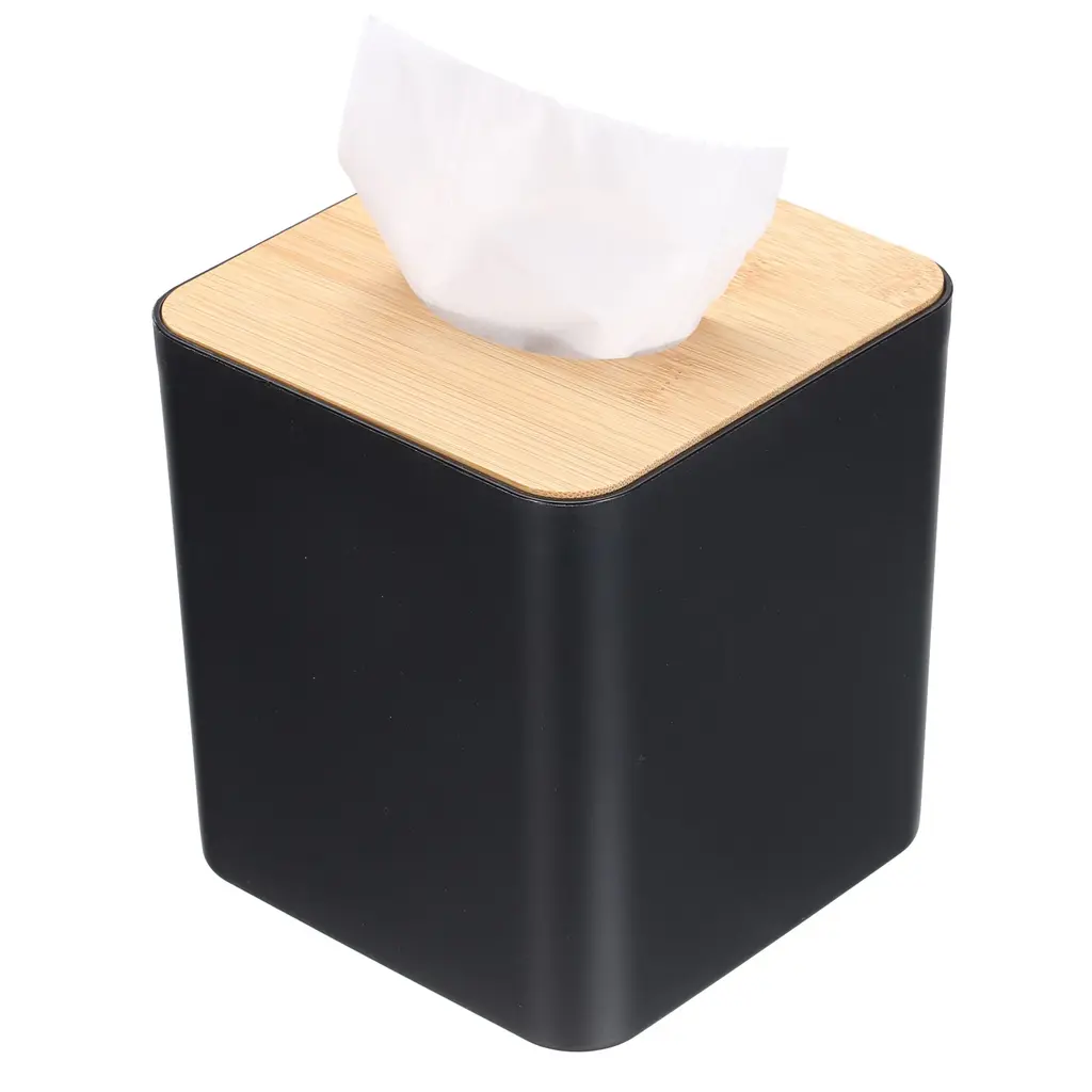Description:Easy to Clean: The tissue box holder is made of PP and bamboo plate, sturdy, durable, and easy to clean with just a damp cloth, making your home or office more comfortable and beautifulRemovable Bamboo Lid: The tissue holder is designed in a sleek style with a removable bamboo lid to make it easier for you to take out the tissue, and it is easy to replace with a new one, against the tedious operationEasy to Use: Simply place the tissue inside the tissue box, ensuring that the opening is aligned with the dispenser slot for easy access to tissues, and attach the bamboo lidWide Application: This tissue holder box is a multipurpose tissue box that holds tissue, wipes, gloves, garbage bags, and more. This facial tissue holder is suitable for use in bathrooms, vanities, sinks, nightstands, and office tables, providing an aesthetic storage solutionNote: Manual measurement, please allow slight errors in size. The color may have a slight difference due to different screen displays.Specification:Material: PP, Bamboo PlateColor: BlackSize: 13 x 13 x 14 cm / 5.1 x 5.1 x 5.5 inch (L*W*H)Package Included: 1pcs x Tissue Box