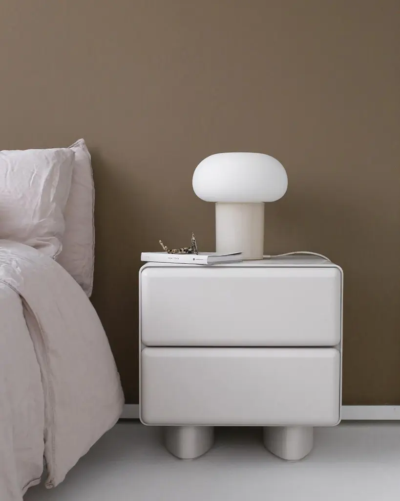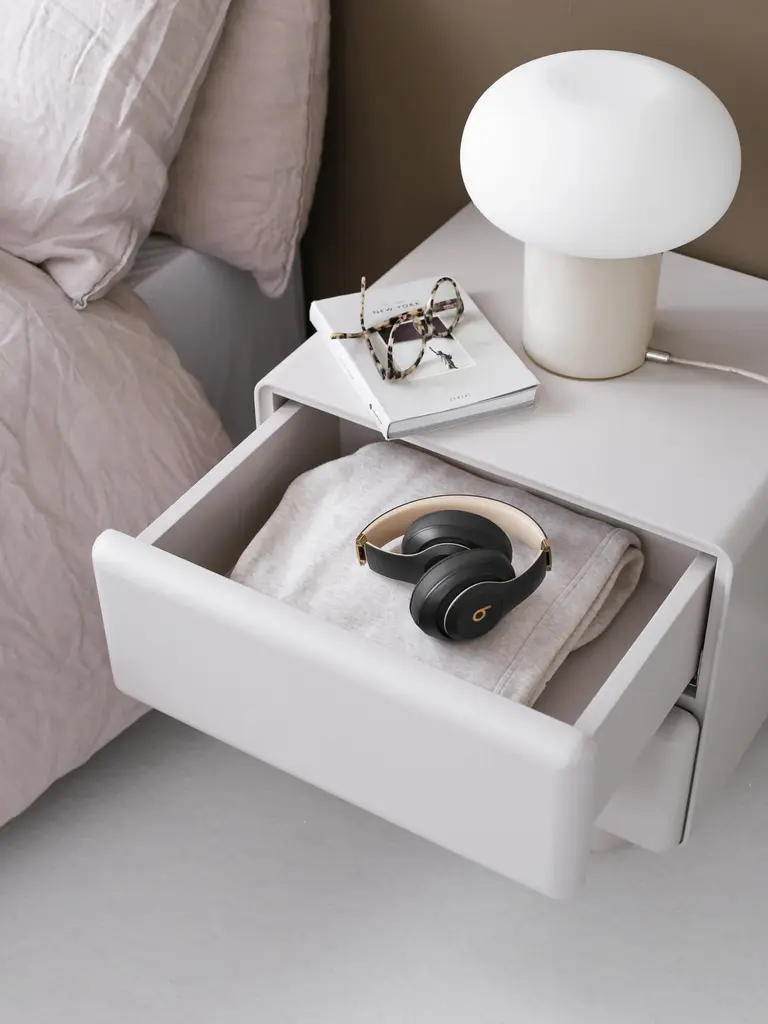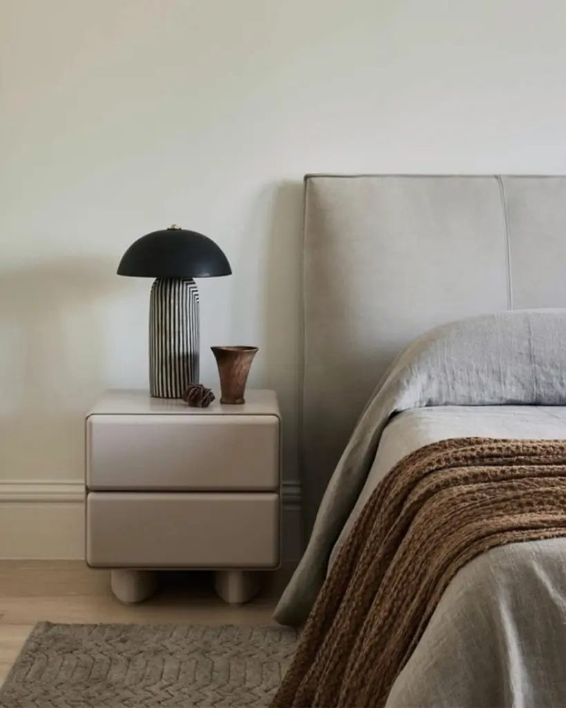 An aesthetic of honesty permeates Yet Design’s furniture, showcasing the power and beauty of simple geometric shapes. Their timeless designs combine sculptural forms, the material’s perfect imperfections, and traditional craftsmanship. It is a design nightstand that stands out with its unique iconic foot style.It has 2 drawers and the drawers have bloom branded push-to-open mechanism. It is handcrafted using natural methods by local artisans. Regarding the push-to-open mechanism, it is always recommended to push on the middle part of the drawer.