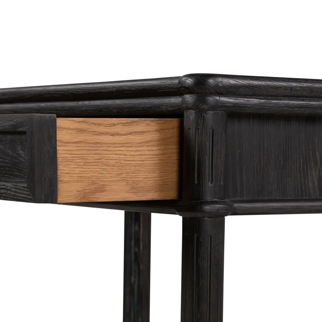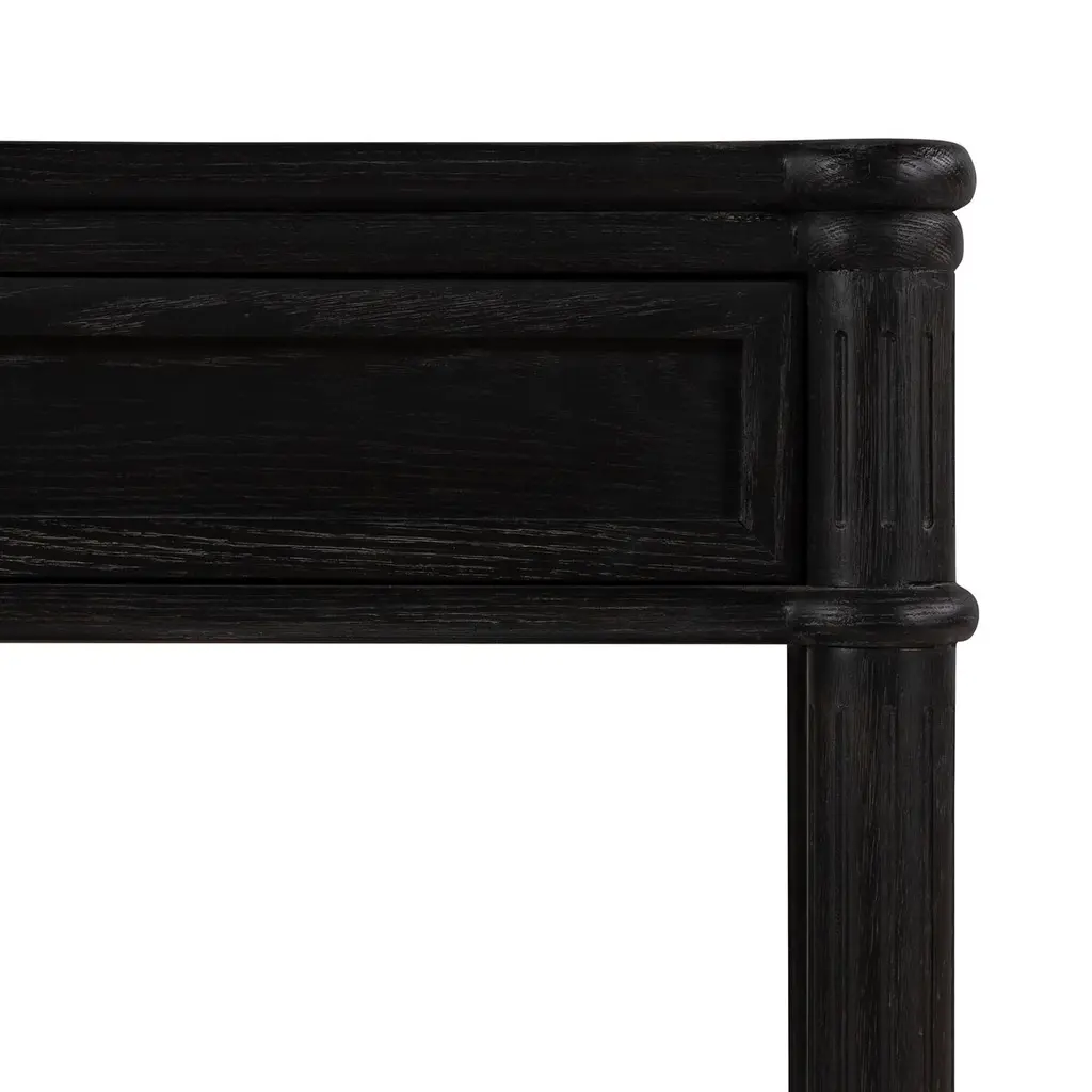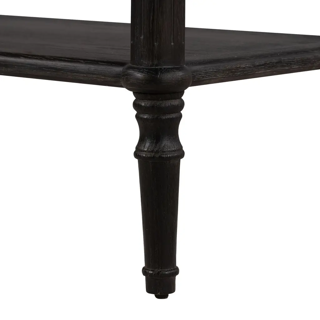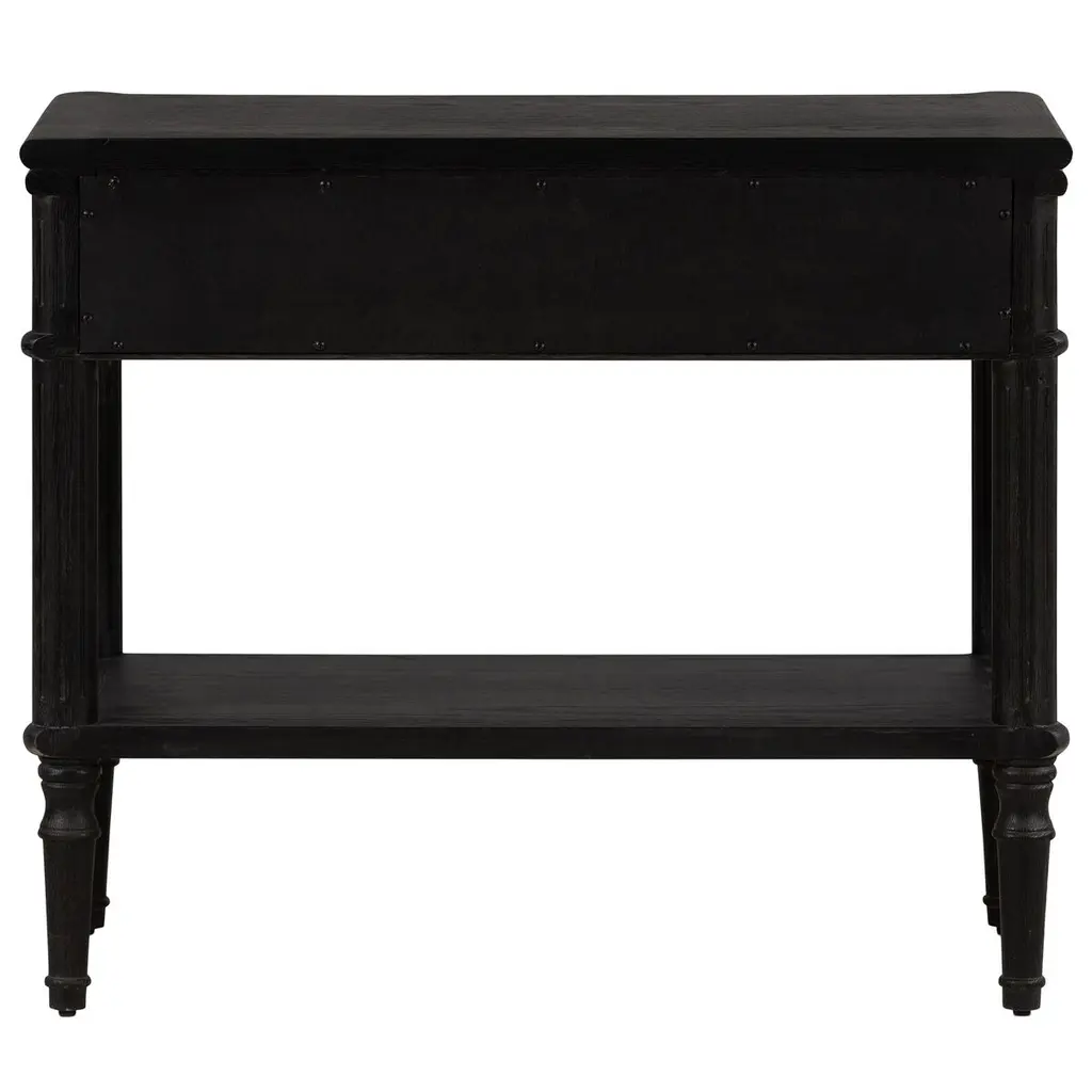 With its framed panels and tapered turned legs, this oak nightstand is rich in refined details. Below the drawer is an open shelf for additional storage or display space.