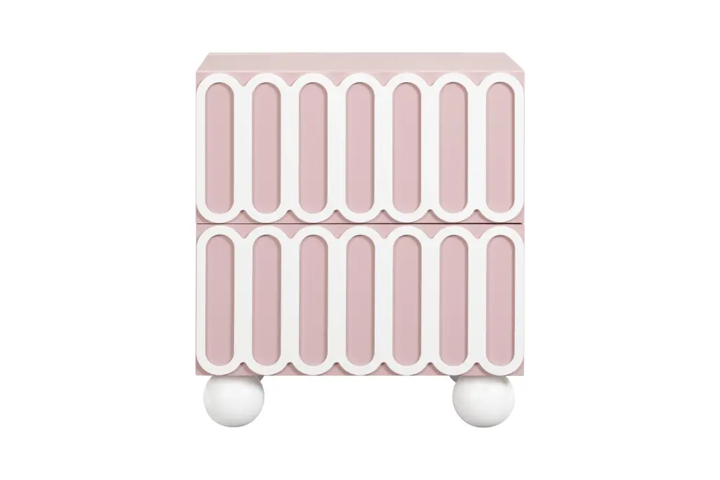Say goodbye to a boring bedtime routine with the Tori Motif Nightstand, available in dreamy mauve and sophisticated taupe, each featuring a statement-making facade that truly pops. Its solid wood, spherical legs infuse a sculptural Hollywood buzz, while the medium sheen on the surfaces delivers just the right amount of drama without fussy maintenance. Plus, the nightstand's drawers glide smoothly on soft-close rails, ensuring you keep the morning peace, not waking your partner as you start your day.