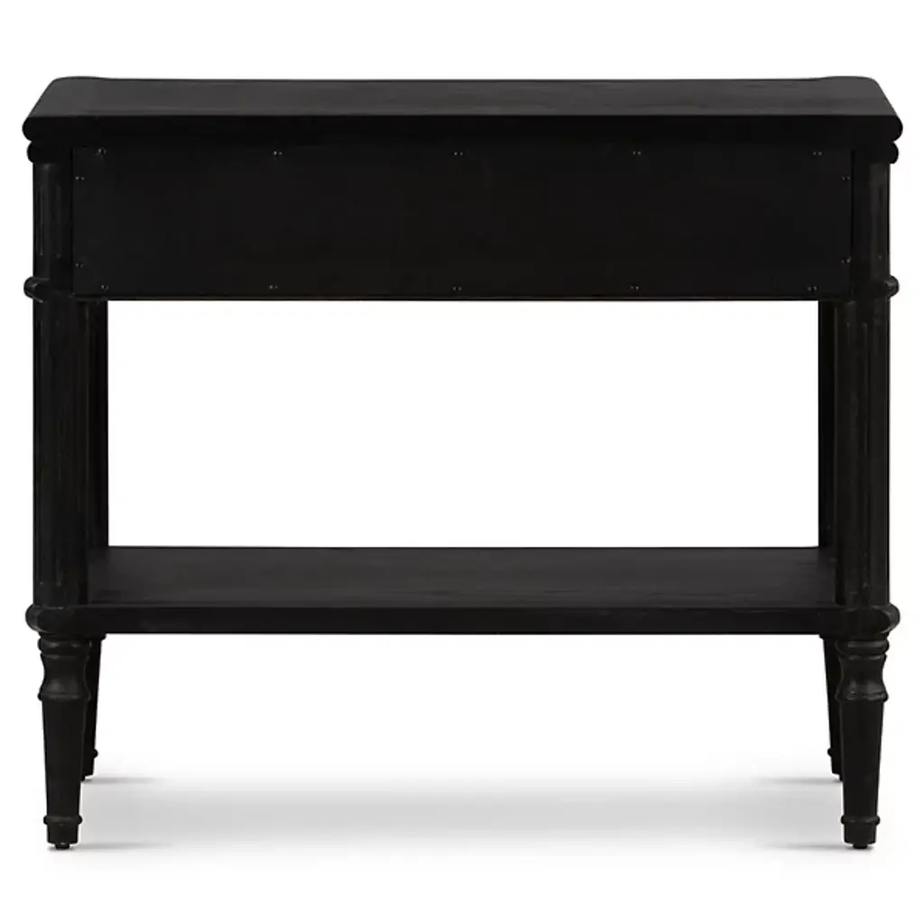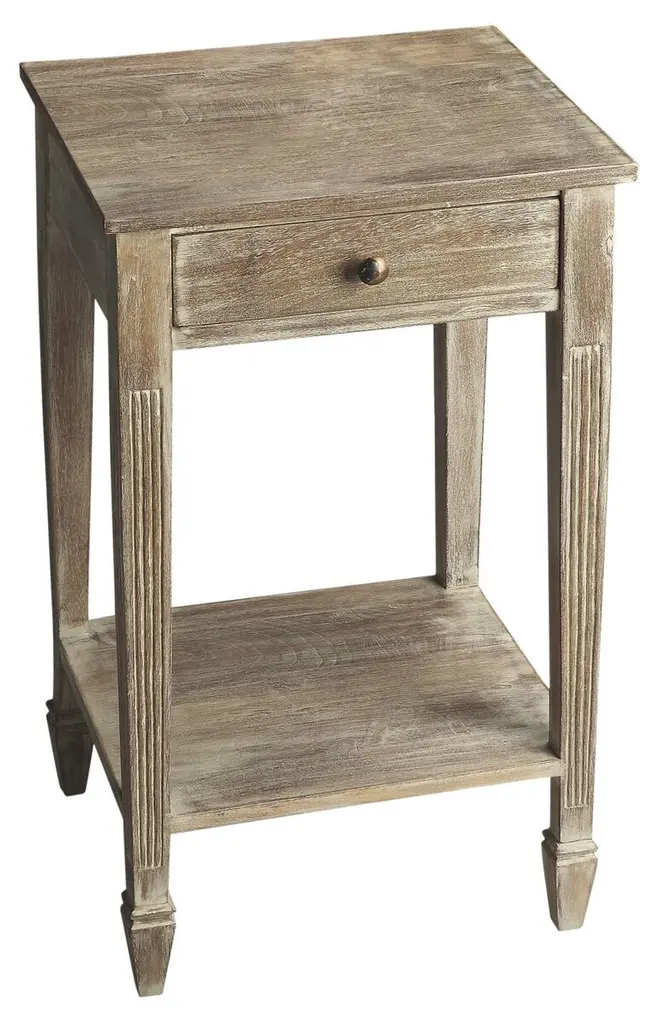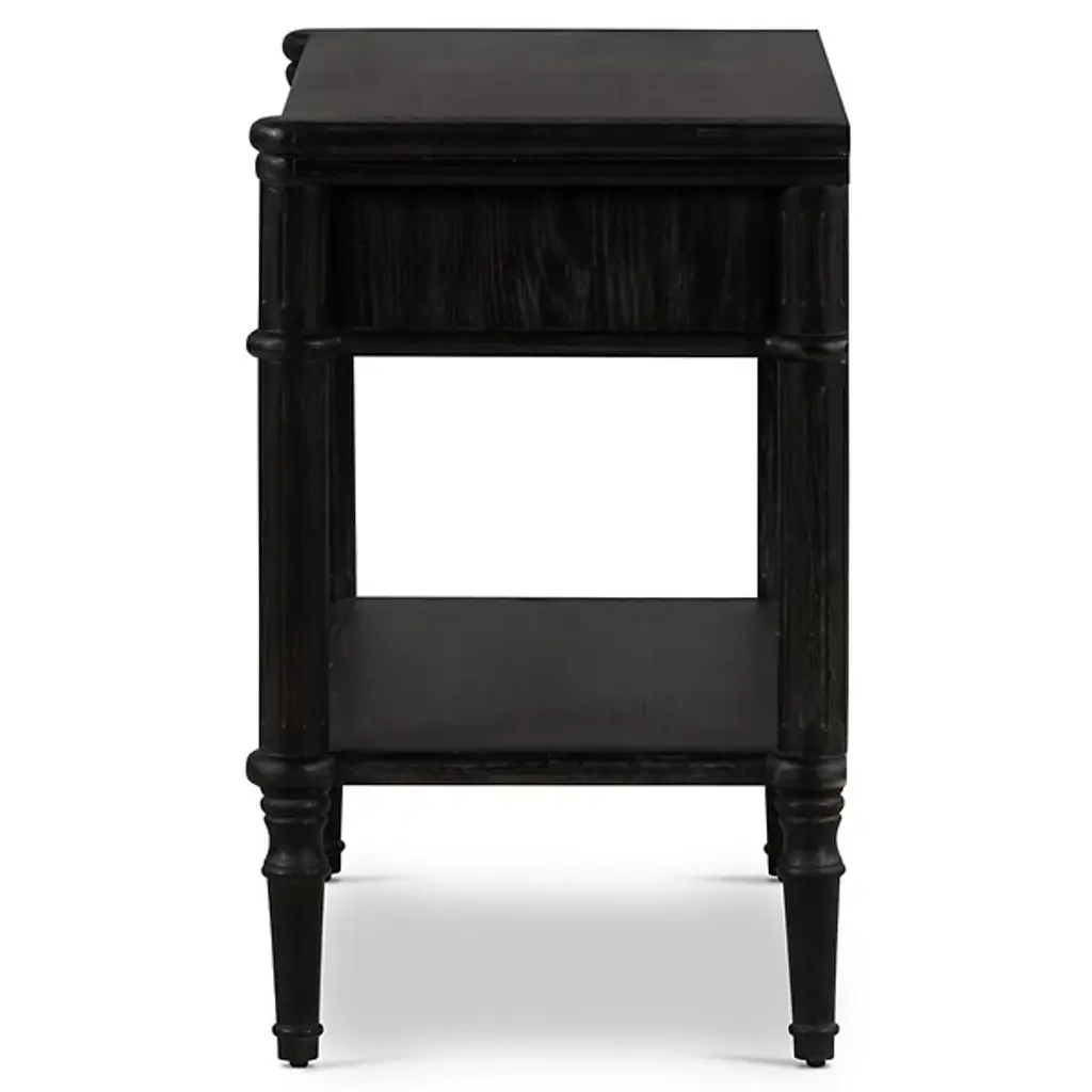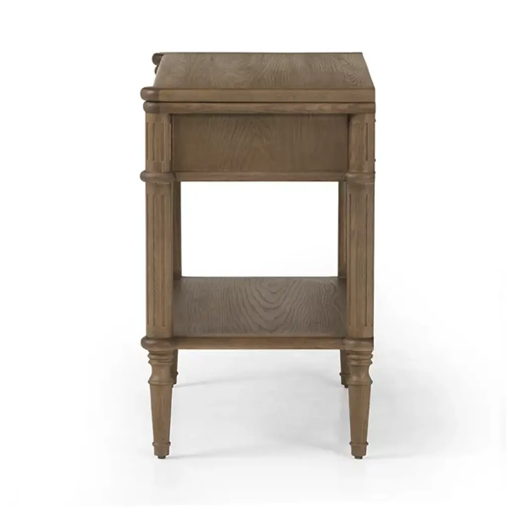 Add an open, expressive character to spaces with the Toulouse Nightstand from Four Hands. Able to serve well at a bedside or next to a couch or chair in a living space, its four-legged columnar construction supports a lower shelf, extending contoured legs to a slim drawer with different textures highlighting an oval metal pull. The clean-surfaced wood veneer contrasts well with the antiqued metal pull, adding a rustic modern presence to its surroundings.
