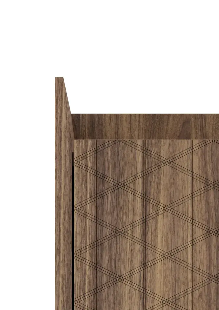 Trame is a design bedside table equipped with a single drawer with soft closing.Internal drawers made of 15 mm plywood and mounted on BLUM guides.The finish shown in the picture: made of natural Canaletto Walnut essence.Wooden base H 27. Bedside table decorated with T.4A engraving"Infinite combinations of shapes and colors for TRAME, the collection of containers designed by Manuela Pelizzon. Rigorous and essential lines embellished byTextures engraved on the surface. History and craftsmanship intertwine once again to give life to the Trame collection, where precious materials and processes are expressed in pure elegance. The pure geometric decorations of Trame are inspired by the Japanese "Kumiko", an ancient technique of working and assembling thin pieces of wood without nails. The Kumiko woodworking technique developed in Japan during the Asuka era (600-700 AD) and has since been perfected and handed down by generations of craftsmen.The designs for the kumiko pieces are not chosen at random: many of the nearly 200 models used today have been around since the Edo era (1603-1868). Each design has a meaning or imitates a design found in nature that is meant to be a good omen.Also for Trame the decorations have been reinterpreted in order to bring them back to the new modern languages.Not simple furniture, but objects that give emotions at every glance. "
