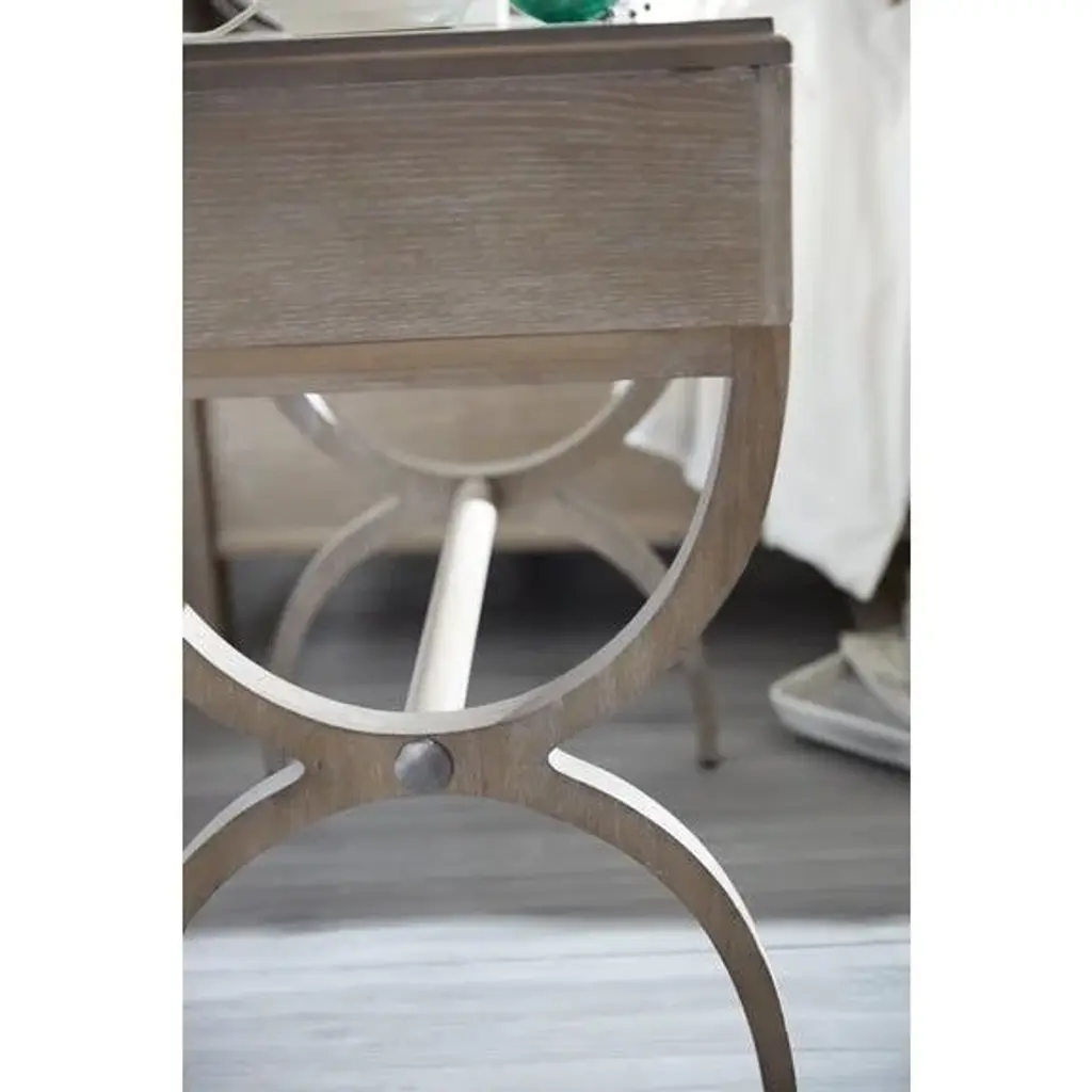A simple design that adds an additional convenient storage option right next to your bed. The greige sand-blasted finish brings out the detailed grain of the oak veneers, adding a bit of warmth to your bedroom. While the sweeping legs bring just a hint of modern, creating a beautiful transitional nightstand that is both easy on the eyes and built to last with dovetail construction on the drawer.