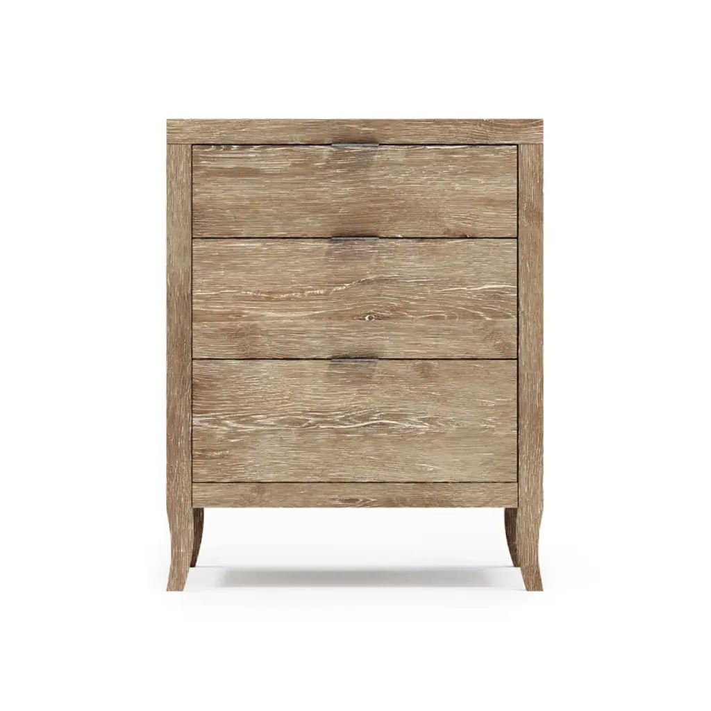The Tribeca nightstand pares traditional design to simpler lines and stunning rustic style. The details of natural wood are highlighted by the Aurum finish. Each of the three drawers has a textured metal pull tab in Barlow finish. A two-port USB charging unit is included.
