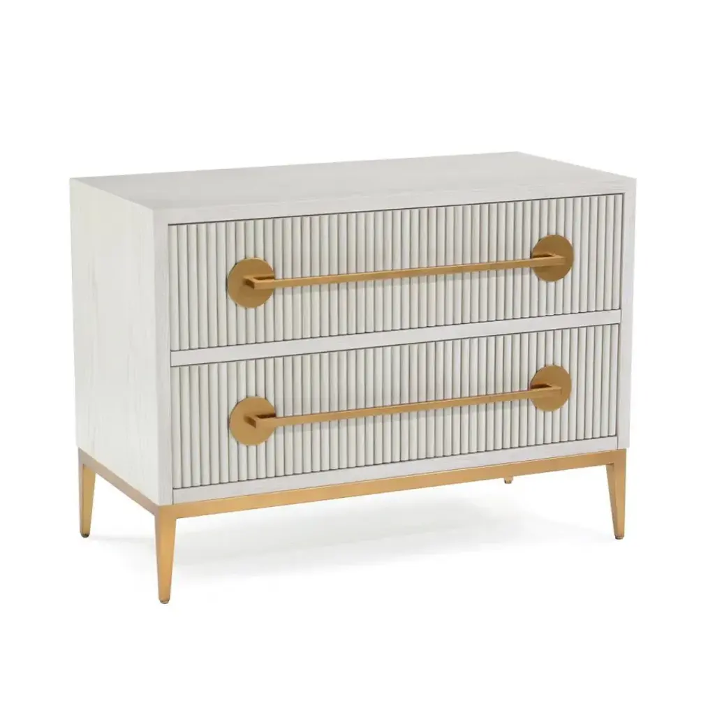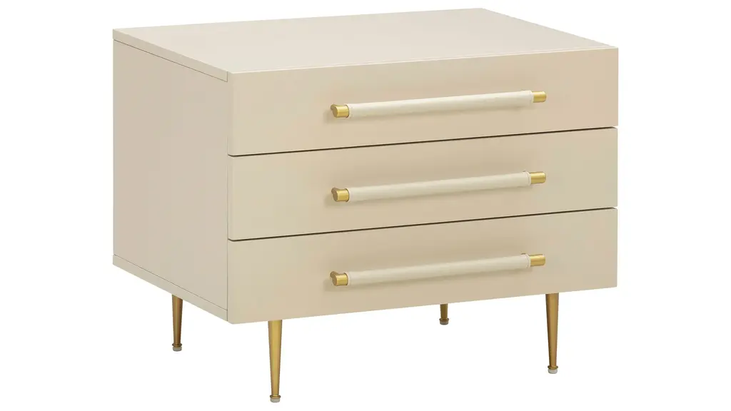 Simple yet brimming with understated elegance, the Trident Nightstand offers modern appeal and stylish functionality. Featuring plenty of storage space for your essentials, soft-close drawers and brass accents.