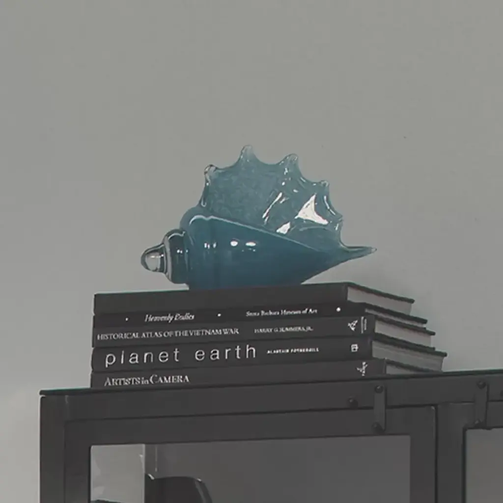 Bring a soothing coastal vibe to your home with this hand-blown glass seashell. Each featuring unique variations that highlight its one-of-a-kind beauty. Place it on your nightstand, bookshelf or anywhere that needs a little added impact.