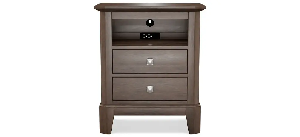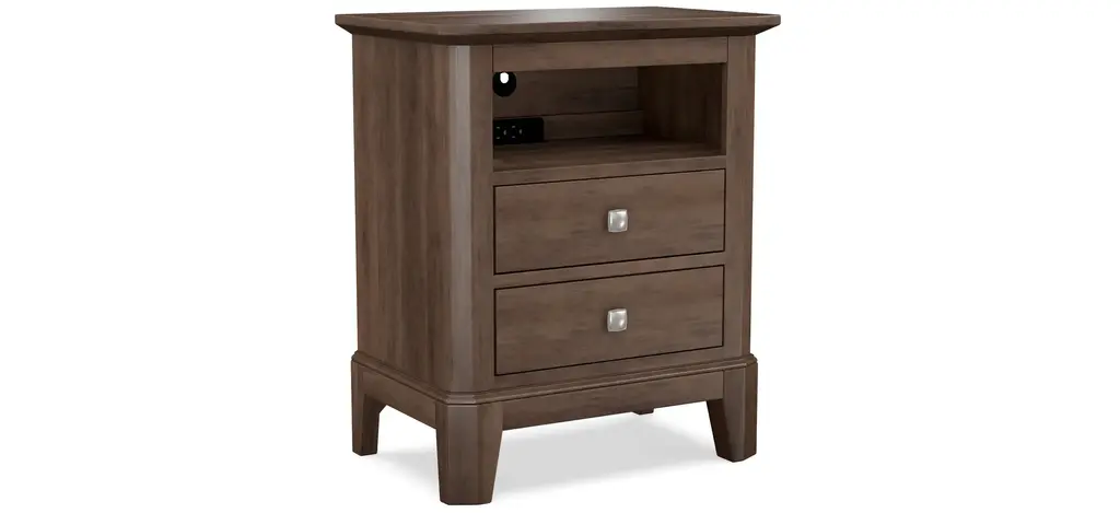 This Urbane Nightstand, with its wide bevel pilasters, tapered feet with matching bevel and case tops with clipped corner design complete this transitional look. Made of solid maple using quality craftmanship techniques that include mortise & tenon joinery, corner blocking, soft close drawers with English dovetail and a catalyzed lacquer finish, this storage piece is built to last.
