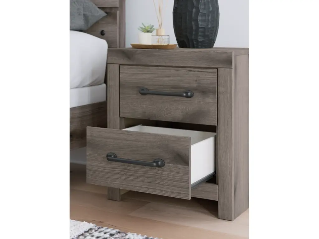 Combining a casual aesthetic with functional flair, the Urbanoore nightstand suits styles from rustic to industrial. Its smooth-gliding drawers store essentials with ease. Ready to recharge? Included USB ports allow you to keep go-to devices close. Dressed in a chic weathered gray, this nightstand brings a charmingly curated vibe to your bedside.