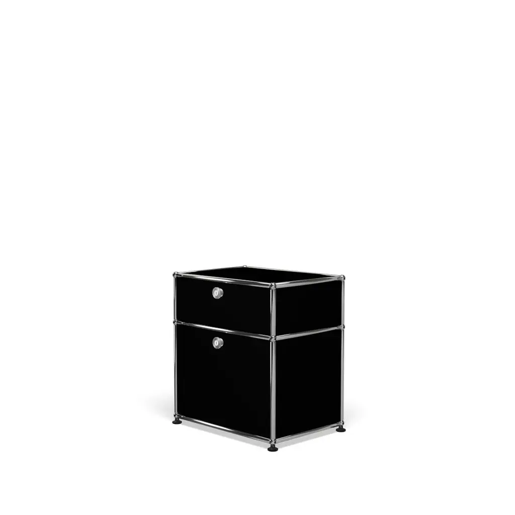 Offered by M2L.With two drop down doors. Designed by Swiss architect Fritz Haller and Paul Schaerer in 1963. Made from powder coated steel and chrome-plated steel tubes, the USM Haller system is built to last for generations and adapt as your needs change. Proudly in production for over fifty years, it remains just as timelessly stylish, trailblazing, and unique as it was the day it was first created. It’s an icon of modernist design and art – it’s been a part of the Museum of Modern Art’s permanent collection in New York since 2001. Made in Switzerland.Dimensions: 21" W, 15" D, 22" H.