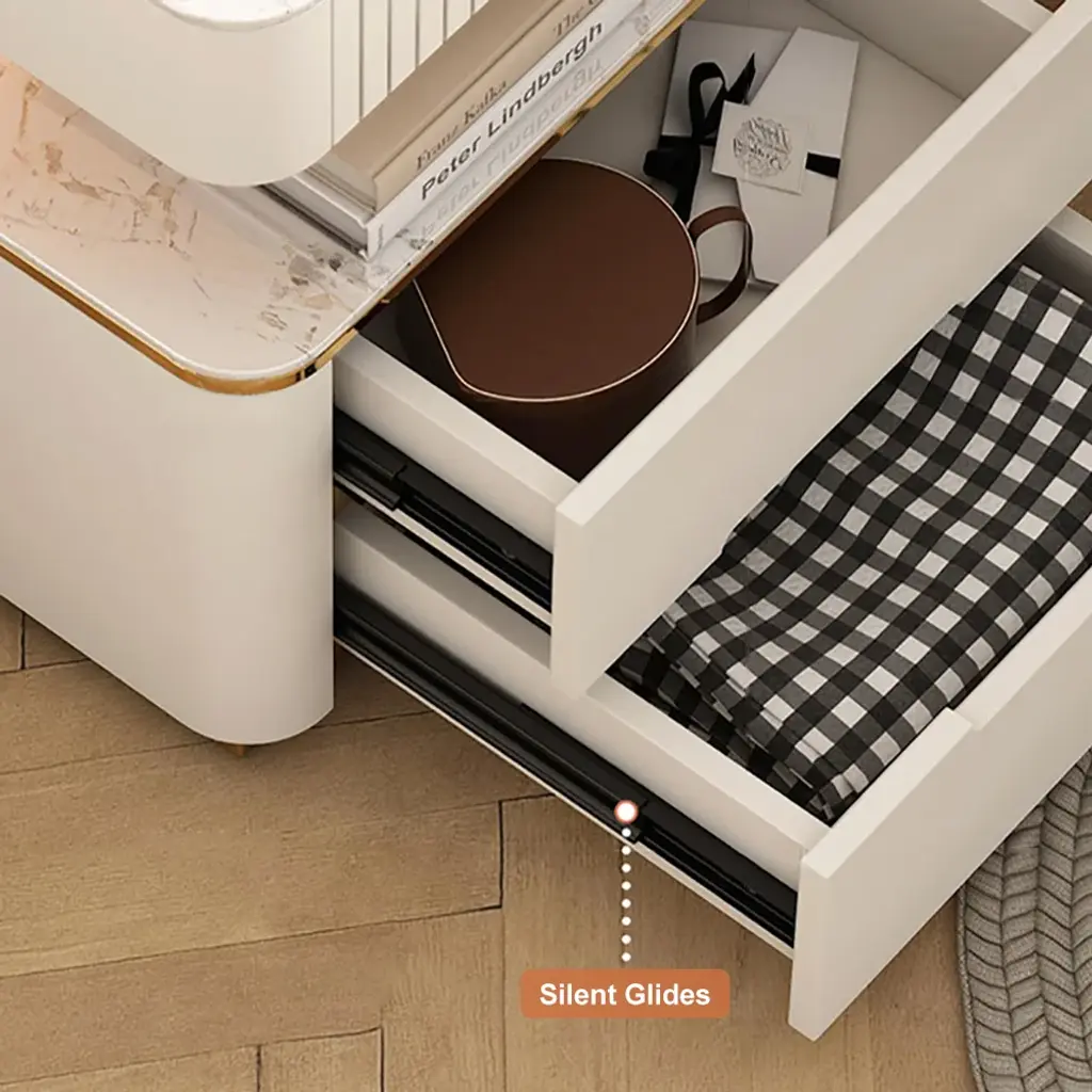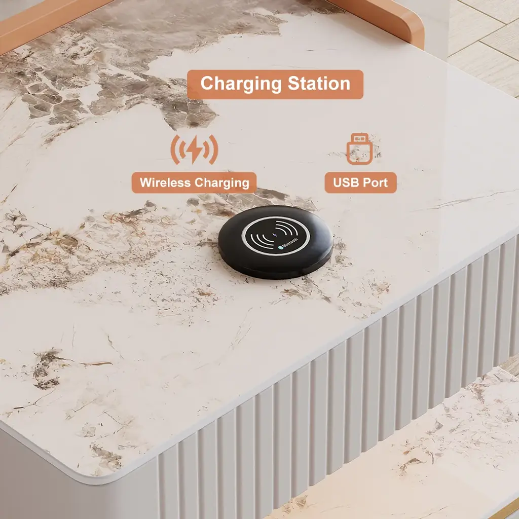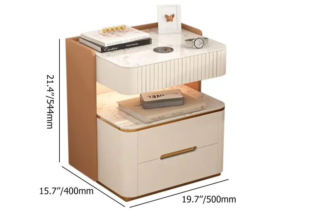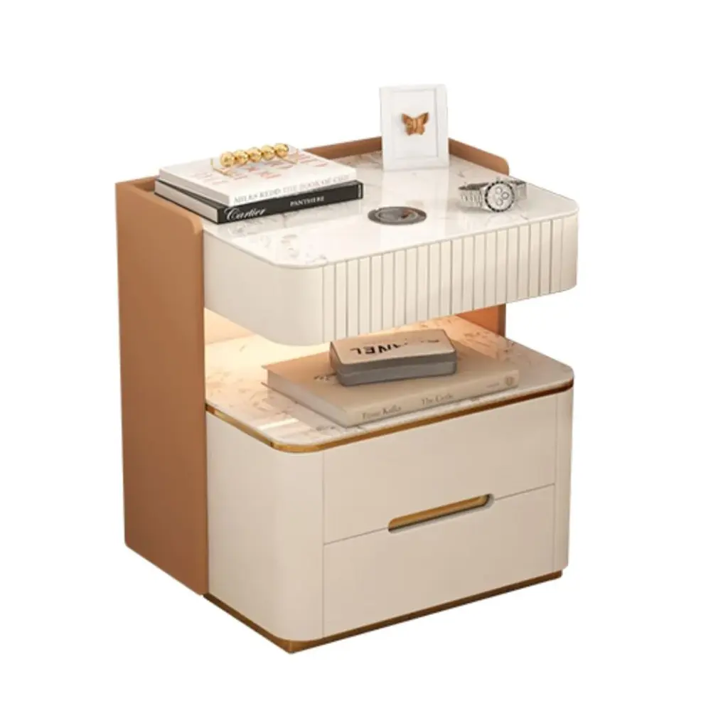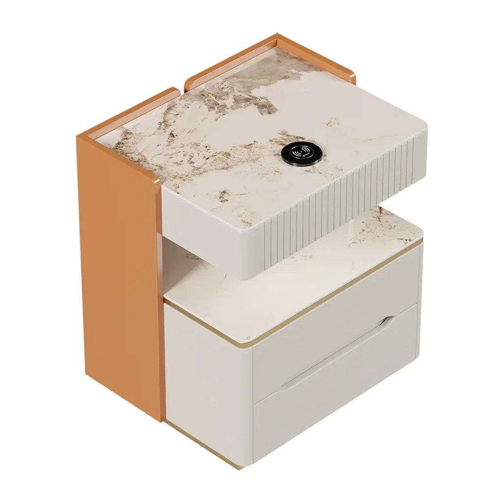 Experience the ultimate in modern technology with our smart nightstand. Crafted from premium quality sintered stone and mdf, this nightstand boasts a range of digital features that take your bedtime routine to the next level. Featuring a built-in wireless charger and sensor light, you can easily charge your phone and navigate in the dark without any cords or hassle. But that's not all - this smart nightstand also boasts bluetooth speakers, providing crystal clear sound for your favorite tunes or audio books. With its cutting-edge features, this smart nightstand is perfect for anyone who wants to streamline their life and enjoy the convenience of modern technology. You can now control your connected devices, set alarms, and even use voice commands, all from the comfort of your bed. In addition to its digital features, this nightstand is also beautifully designed, seamlessly blending into any bedroom decor and adding a touch of sophistication. Why settle for an ordinary nightstand when you can have a smart one? Experience the perfect combination of style and digital functionality with our smart nightstand, you'll enjoy a better night's sleep and wake up feeling refreshed and ready for the day ahead.