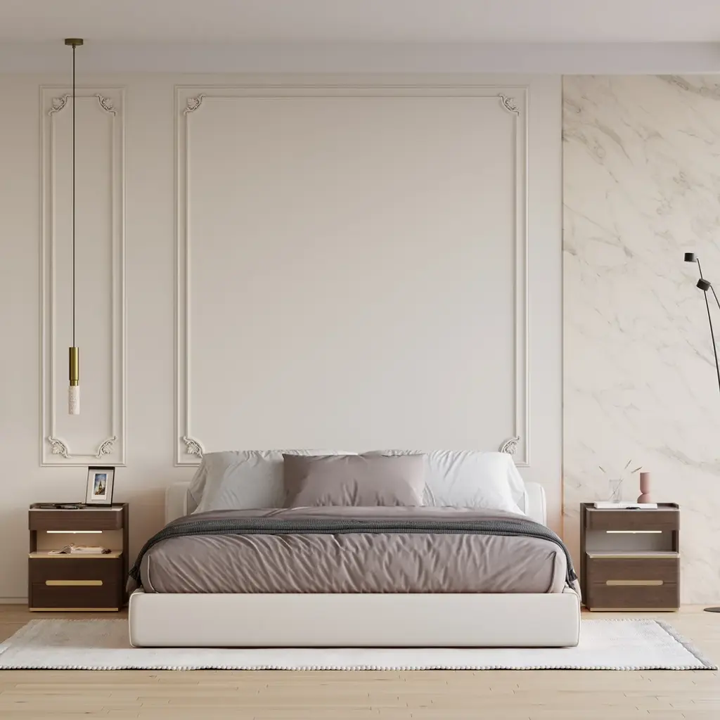 Discover the future of bedtime convenience with our smart nightstand, crafted from premium sintered stone and MDF. It features a built-in wireless charger, sensor light, and Bluetooth speakers for seamless audio. Control your devices, set alarms, and use voice commands—all from your bed. Stylish and functional, it enhances any bedroom decor for a refreshing night’s sleep.