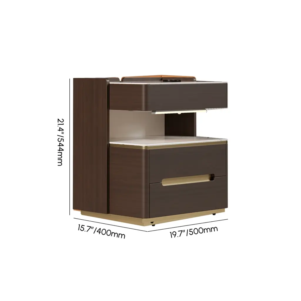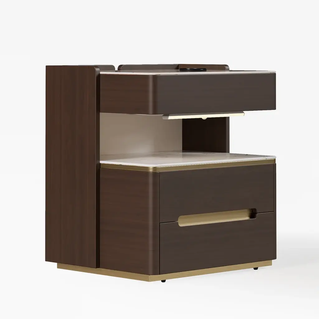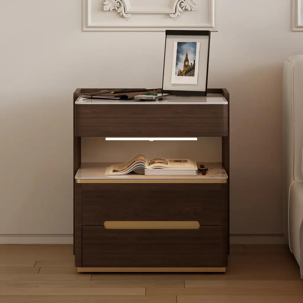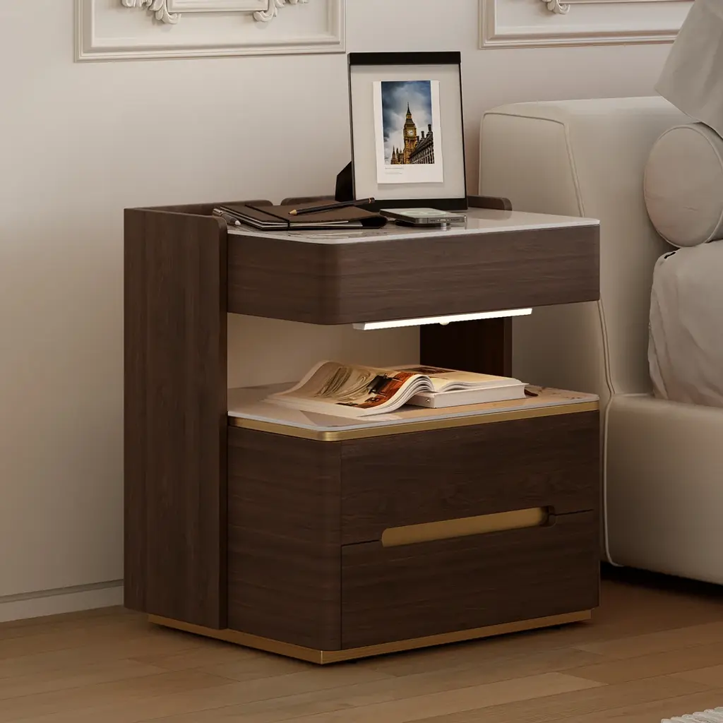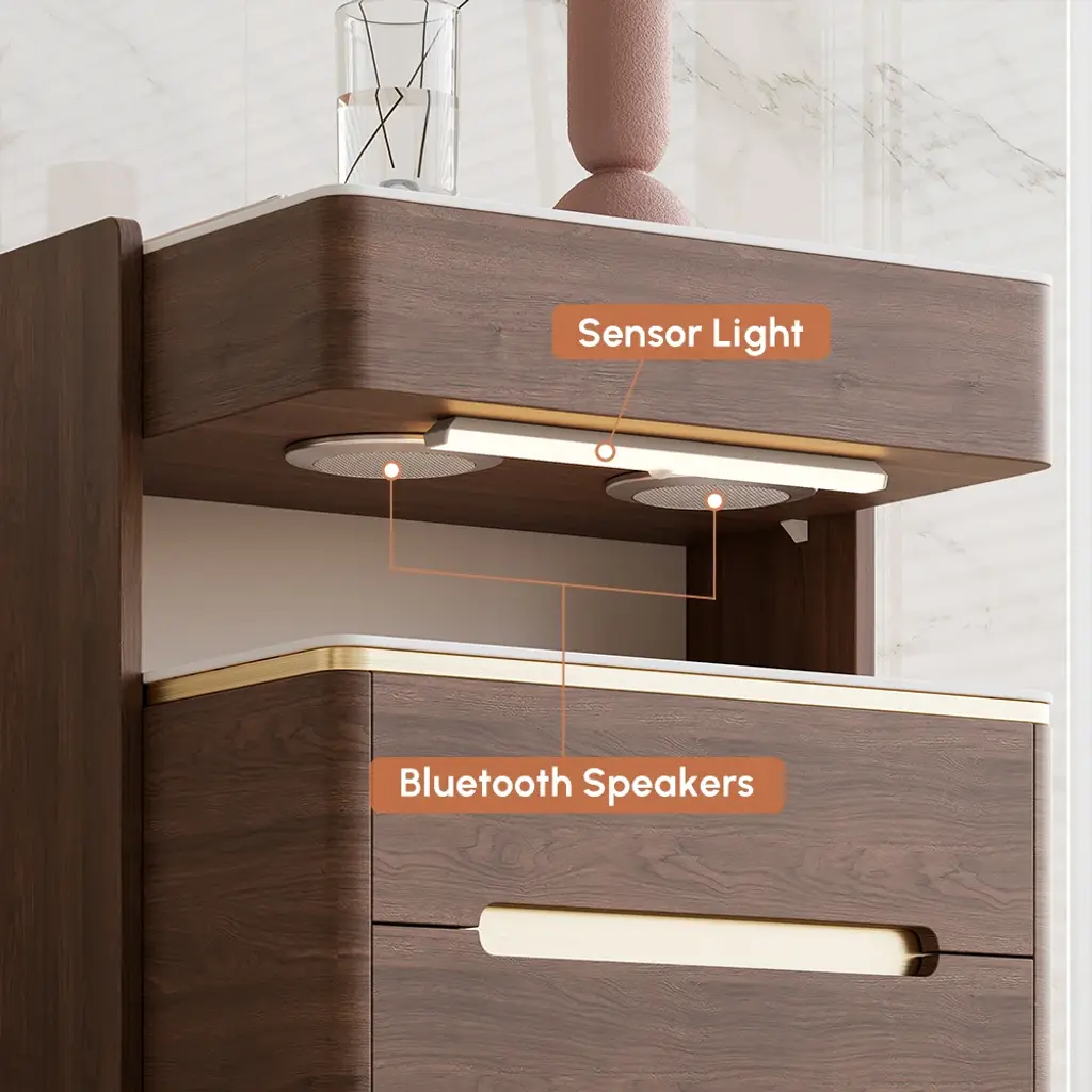 Vailora Smart Walnut Nightstand With Wireless Charger & Sensor Light Bluetooth Speakers