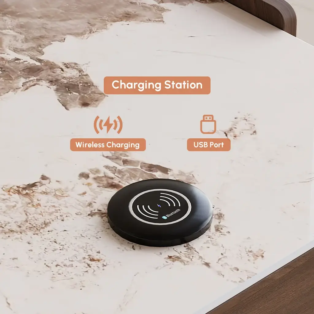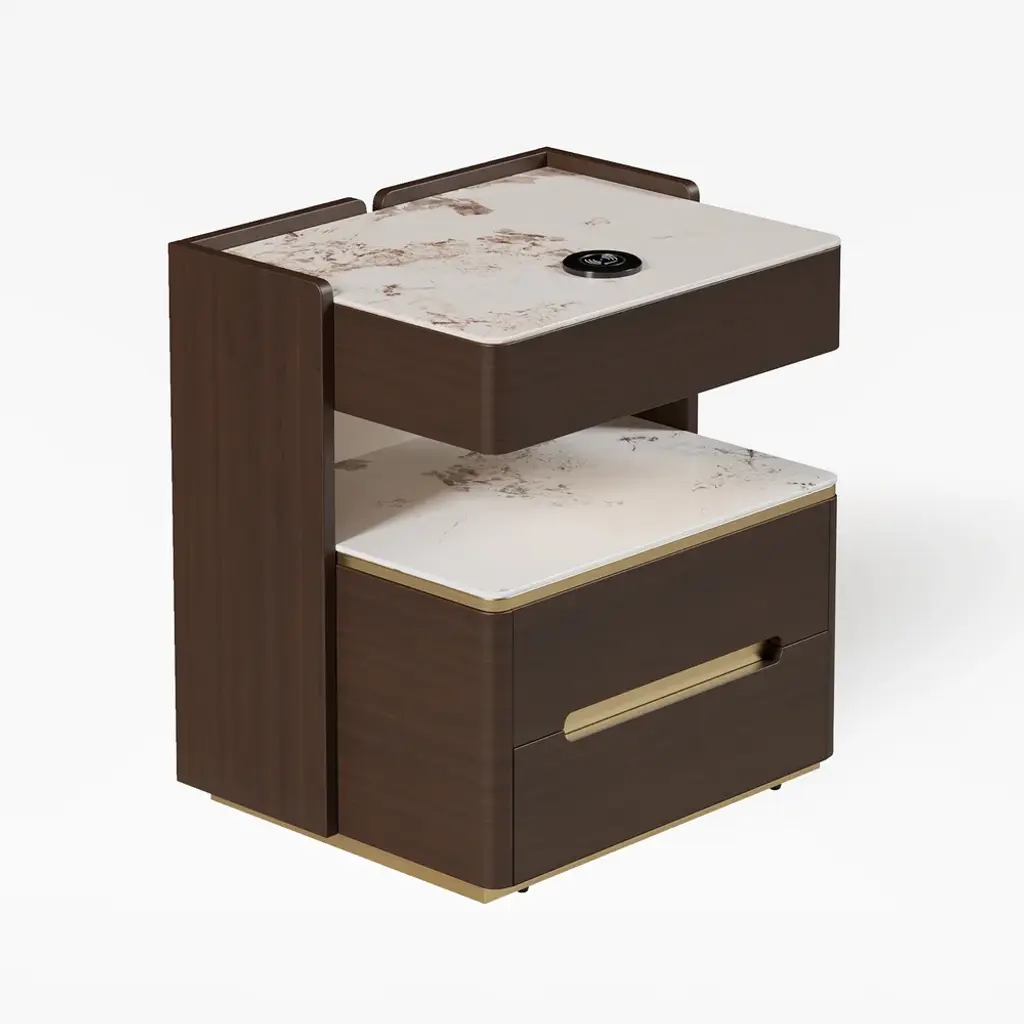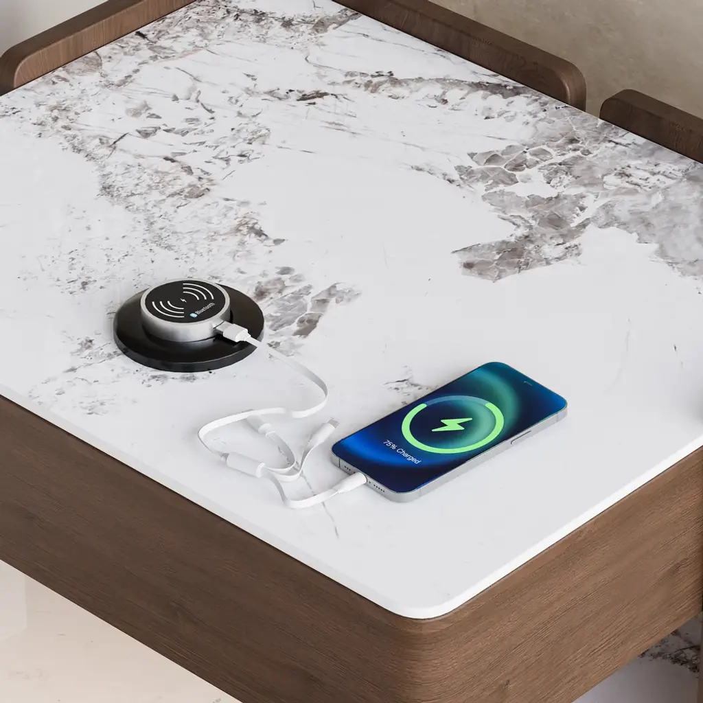 Elevate your bedroom with the Vailora smart nightstand, featuring a sleek sintered stone top, built-in wireless charger, sensor light, and Bluetooth speakers. Its spacious design offers ample storage, making it ideal for medium to large bedrooms. Control your devices, set alarms, and enjoy seamless audio—all from your bed.