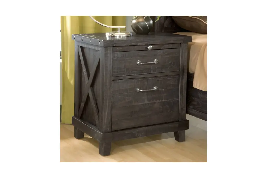 The Vantage Nightstand features a unique X side panel and a cool pull-out, flat, writing drawer. Great for your contemporary or rustic home!