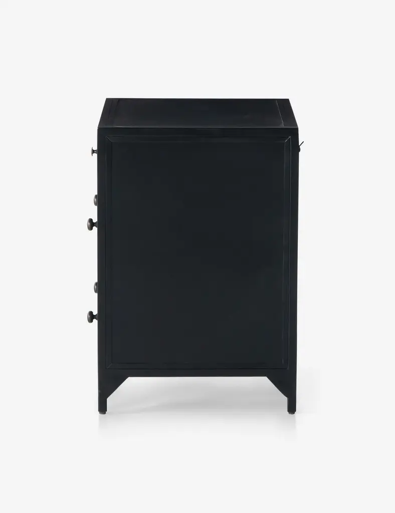 Perfect for industrial-inspired bedrooms, this nightstand brings a sophisticated touch thanks to round brass drawer pulls that add a little shine to the black iron framing. Designed with three drawers for plenty of storage space.
