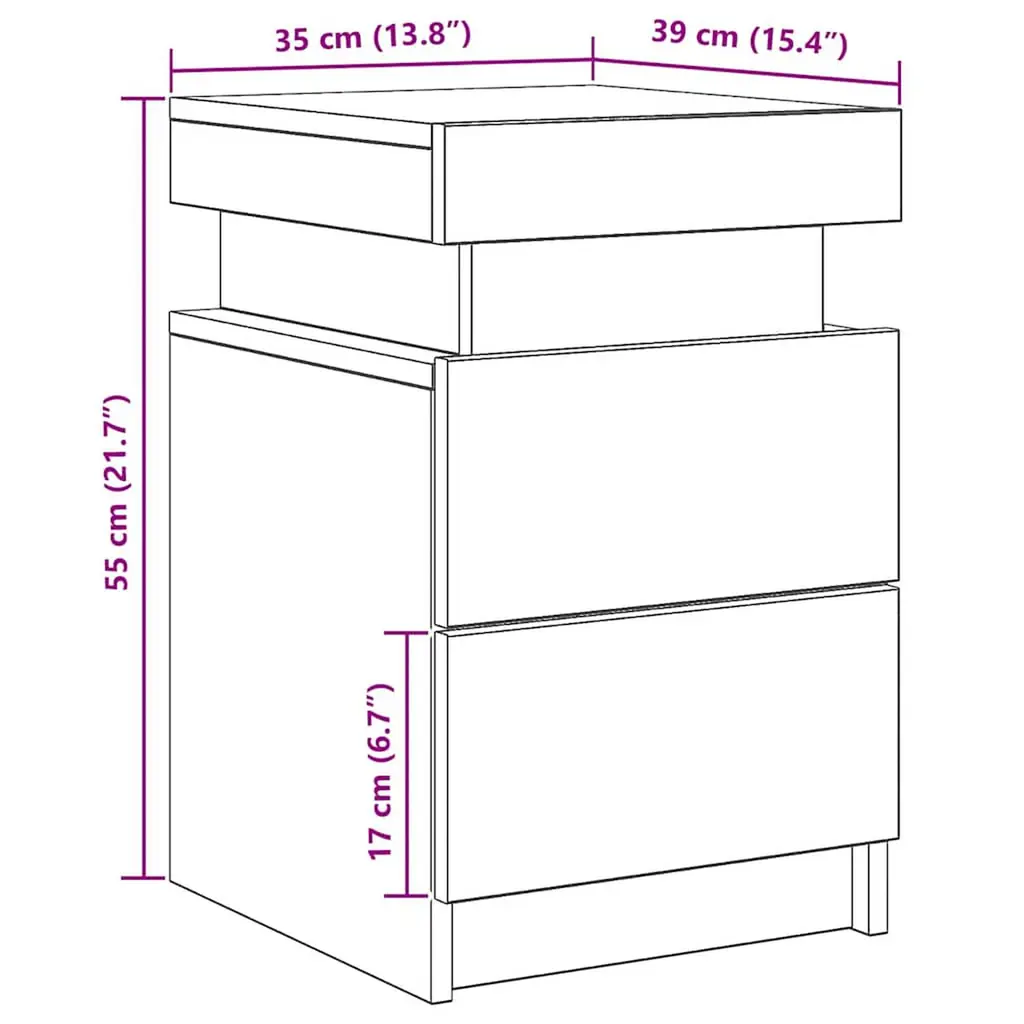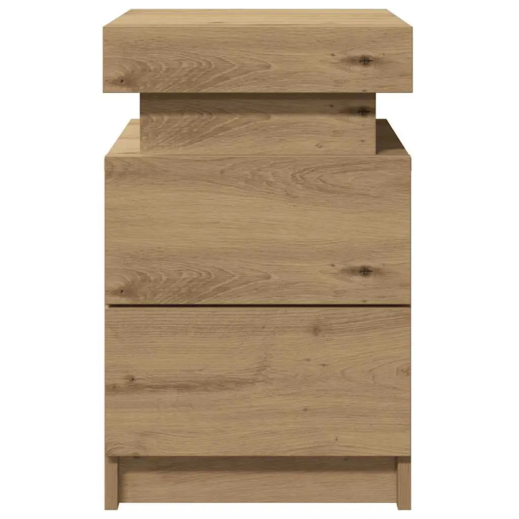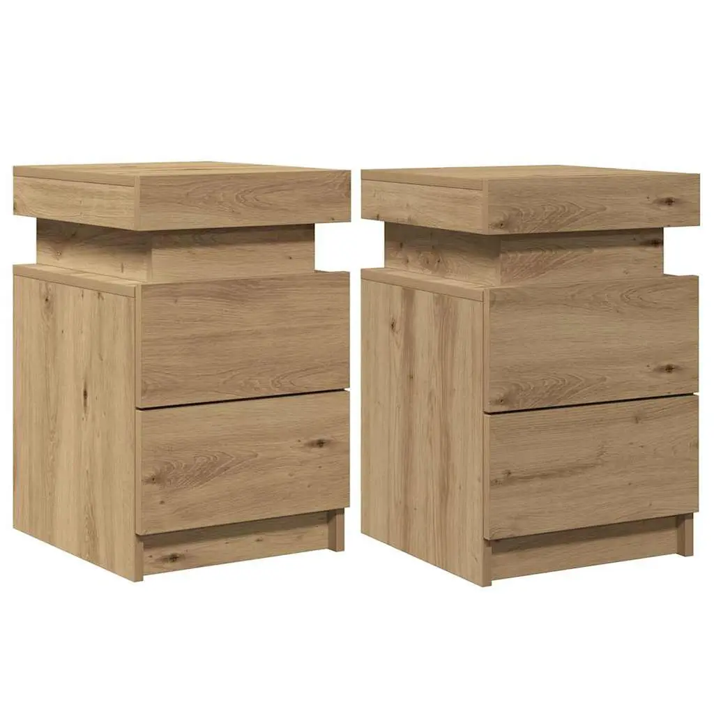 This set of Artisan Oak Bedside Cabinets combines modern design with practical use, perfect for sprucing up your bedroom or living area. The lovely wood grain and soft curves create a warm look, making these cabinets ideal sidekicks for your bedside or lounging spots while offering handy storage for your daily necessities. With a clean, modern style, these bedside cabinets brighten up your space with their simple elegance. The roomy soft-close drawer offers plenty of storage, perfect for keeping your essentials neatly sorted and close by. RGB LED lights add color options to suit any mood, whether you're having a cozy night in or a lively gathering. Top-quality engineered wood gives them durability and a smooth touch, ensuring they'll stick around in your home. Measuring 13.8x15.4x21.7 in, these cabinets are compact yet roomy enough for bedside use, offering versatility in any room.