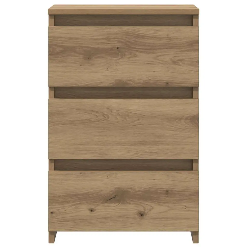 This Artisan Oak Bedside Cabinet set consists of two stylish bedside tables that combine design and function in your home. Perfect for bedrooms, these cabinets bring a warm, practical touch, making them ideal for your bed or sofa, whether for a lamp, books, or personal bits. 【Ample Storage】 Designed with three spacious drawers, these cabinets provide plenty of room to store essentials like books or personal items, ensuring your bedside remains clutter-free. Each drawer glides smoothly, allowing easy access while maintaining a sleek aesthetic. 【Stylish Appearance】 The artisan oak finish offers an appealing contrast against modern or traditional decor, serving as a striking focal point in your bedroom or living room. Its rich brown tones evoke a sense of warmth, sophistication, and artisanal craftsmanship. 【Easy to Maintain】 Crafted from engineered wood, these cabinets feature a smooth surface that makes cleaning an effortless task. Simply dust or wipe them down with a damp cloth to keep them looking pristine and inviting. 【Functional Design】 Each unit functions perfectly as a side table or nightstand, offering versatility beyond the bedroom; they can also complement other spaces as stylish storage or decor elements. This adaptability ensures they fit seamlessly into any home decor. 【Convenient Dimensions】 Measuring 15.7 in in length, 13.8 in in width, and 24.6 in in height, these bedside cabinets fit snugly in tight spaces yet provide ample storage without overwhelming your room, making them an ideal choice for modern living.