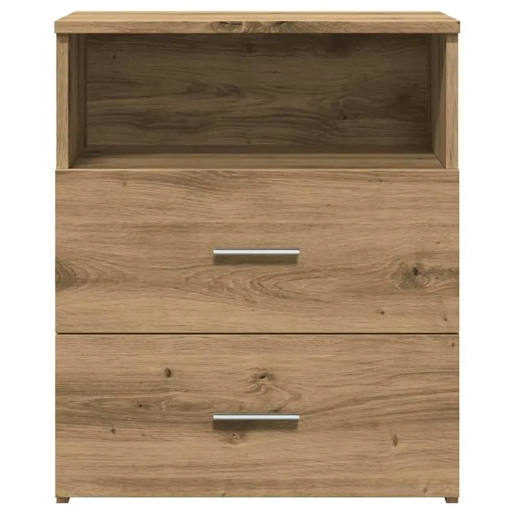 This chic bedside cabinet set is a must-have for any bedroom, blending style and function perfectly. Made from engineered wood in a lovely artisan oak color, they not only look good but also offer heaps of space for your night-time essentials, keeping everything neat and close at hand. Ample Storage Space: Our bedside cabinets come with two standard drawers, perfect for stashing away books, chargers, and your other nighttime necessities. The drawers slide smoothly, making it easy to grab your stuff, and with interior dimensions of 19.7x12.6 in, there's plenty of room for all your bits and bobs. Versatile Design: The modern styling of these cabinets means they fit into all sorts of bedroom themes, from modern to traditional. Their lovely artisan oak finish brings warmth and elegance to your space. Durable Construction: Built from high-quality engineered wood, these cabinets are tough enough for everyday use while looking sharp. The matte finish is easy to clean and holds up well, ensuring they stay looking new. Compact Size: At 19.7 in long, 12.6 in wide, and 23.6 in high, these cabinets are just right for smaller spaces while still providing plenty of storage. Easy Maintenance: Cleaning these stylish cabinets is a breeze; just wipe with a damp cloth to keep them looking fresh. Enjoy the beauty without any hassle!
