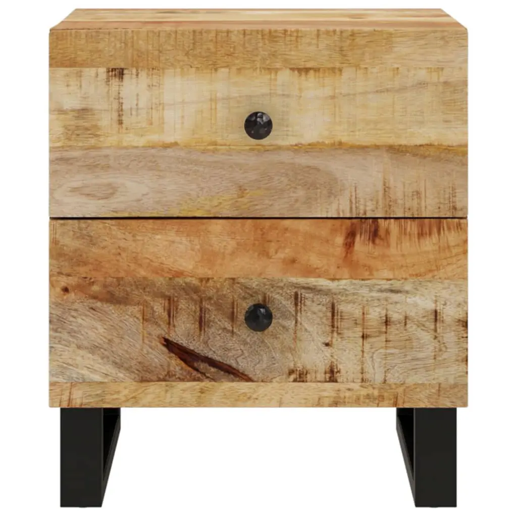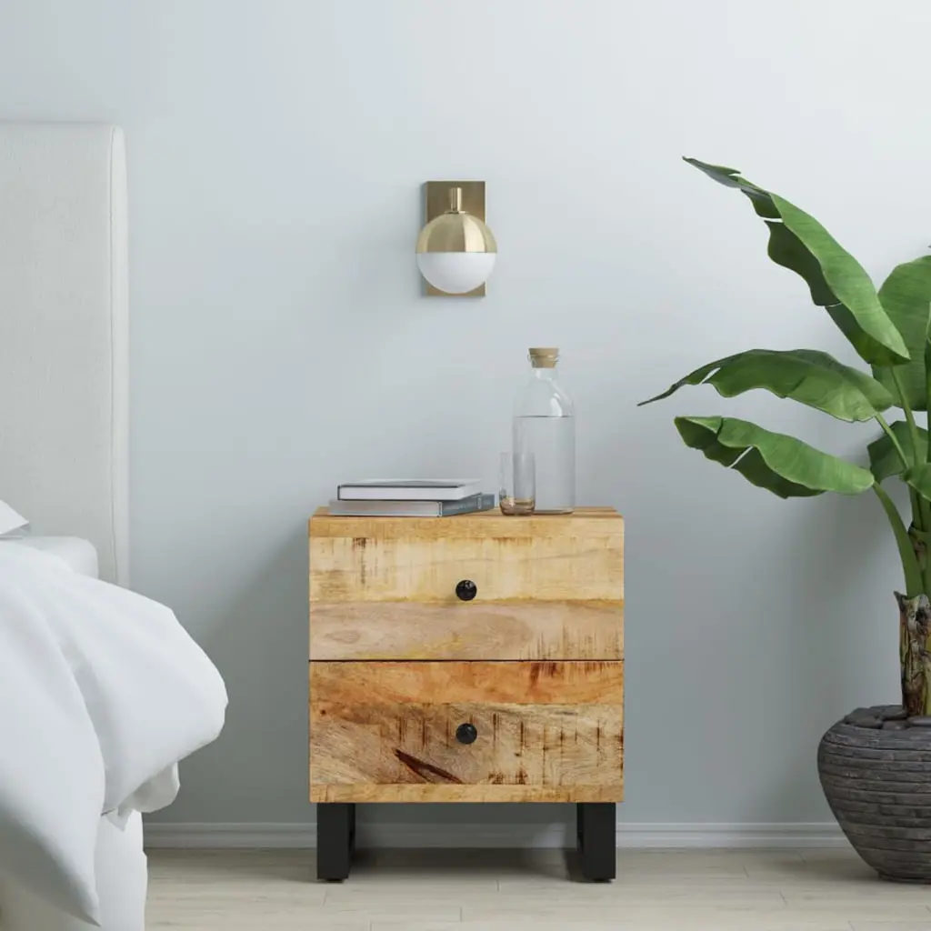This bedside cabinet set, made from solid mango wood and tough iron, is a great mix of useful and stylish, making it a must-have for your bedroom. The sleek black and natural wood finish looks lovely while fitting in perfectly with loads of decor styles, giving you a practical yet chic solution for your bedside items. Ample Storage: With two traditional drawers, this bedside cabinet offers plenty of space for your personal items like books, glasses, and nighttime essentials, so everything’s close at hand.Durable Material: Made from solid mango wood, known for its lovely texture and strong build, along with sturdy iron legs, this cabinet is built to last.Stylish Design: The industrial style of these cabinets, with a matte finish and hairpin legs, adds a modern edge to your space while still feeling warm and welcoming, perfect for any bedroom decor.Strong Construction: The tough hairpin legs not only give it a vintage look but also ensure stability, so you can pile on decorative items or reading lamps without worrying about it tipping over.Convenient Assembly: Just grab a buddy and some common tools, and putting these cabinets together is a breeze, letting you enjoy your new furniture in no time.