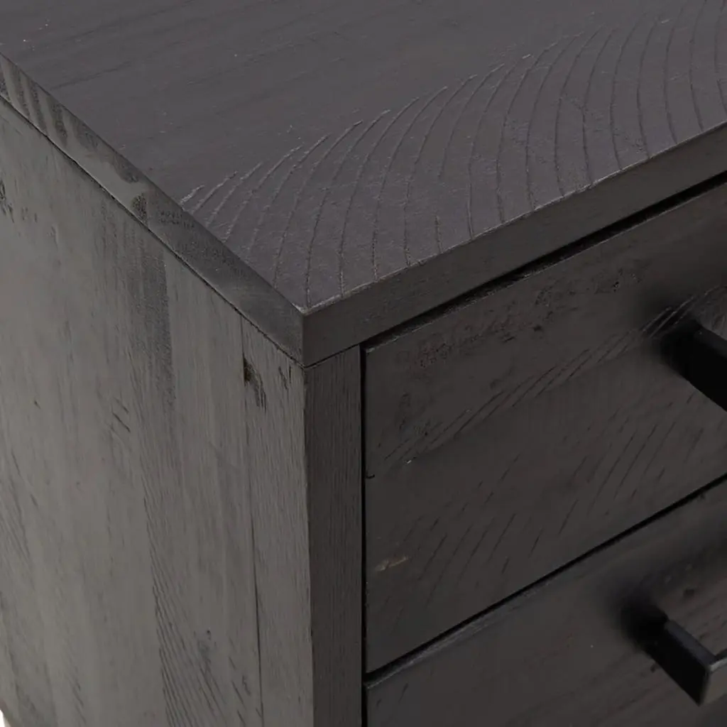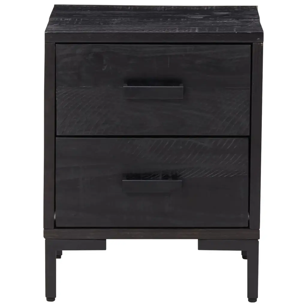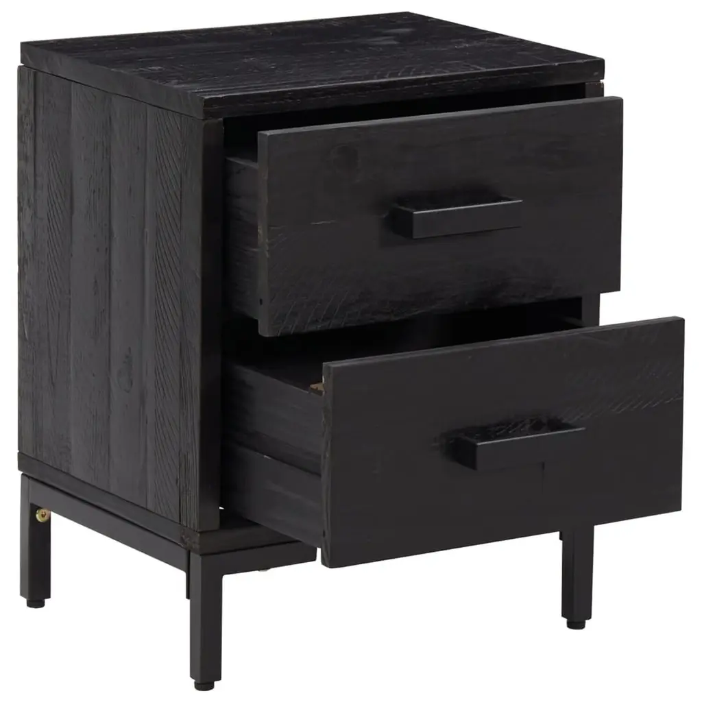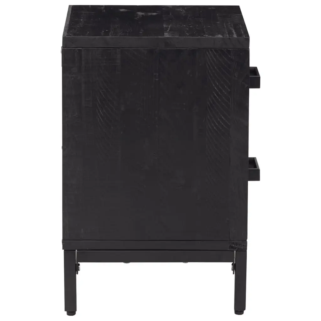 This set of 2 vintage bedside cabinets matches style and function like a pro, adding a lovely touch to your bedroom decor. Built from solid pine wood, these cabinets are both classy and robust, providing a dependable spot for lamps, books, and your personal items. Ample Storage: Each cabinet has two standard drawers, perfect for your nighttime essentials like novels and glasses, keeping your space neat.Durable Construction: Made with solid pine wood, these cabinets promise long-lasting use, able to handle daily wear without compromising on style.Vintage Aesthetic: The black matte finish gives it a classic feel, blending with different decor styles while showing off a lovely vintage touch.Sturdy Design: The square chrome legs keep these cabinets steady, ensuring they stay put under all circumstances.Compact Dimensions: Each cabinet is 14.2 in x 11.8 in x 17.7 in, just right for cozy spots without skimping on storage space.