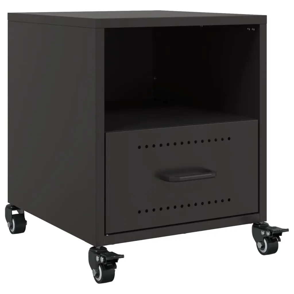 These Industrial Steel Bedside Cabinets mix functionality with a modern look, perfect for any bedroom setup. Each cabinet has a sleek black finish and a solid design, giving you a chic but practical storage solution for keeping your bedside essentials tidy and easy to grab. Ample Storage: Each cabinet has loads of room for your night-time necessities like books, glasses, and gadgets, helping keep your bedroom neat and tidy. Perfect for those who love a clutter-free space, it gives a designated spot for all your night-time essentials.Stylish Finish: The polished black powder-coated surface not only prevents corrosion but also adds a stylish flair to your bedroom decor. It’s an eye-catching finish that vibes well with various design styles.Portable Design: With four wheels, these cabinets can be rolled wherever you need them. Great for anyone who likes to rearrange or do a bit of spring cleaning, they let you switch up your room easily.Durable Material: Built from cold-rolled steel, these cabinets are made to last. They hold up to everyday use without losing their shape, giving you a strong and stylish storage solution.Versatile Use: These bedside cabinets fit into any bedroom style as decorative and practical storage options. Whether you're placing a lamp on them or using them as a nightstand, they add a touch of class and functionality to your space.
