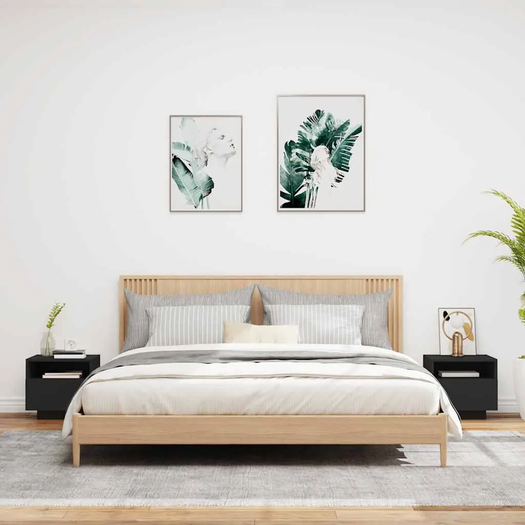 Vidaxl Bedside Cabinet Set Of 2 Black Engineered Wood Bedside Cabinet