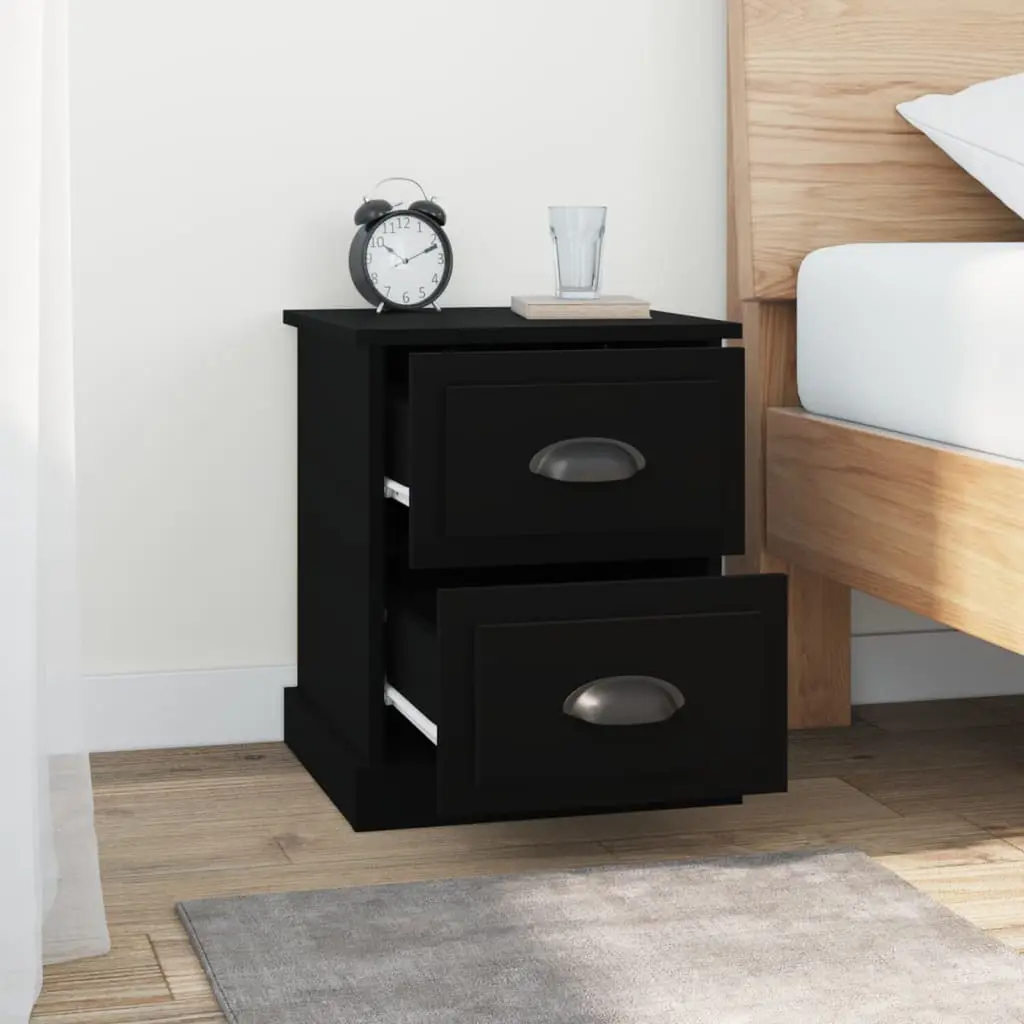 Vidaxl Bedside Cabinet Set Of 2 Black Engineered Wood