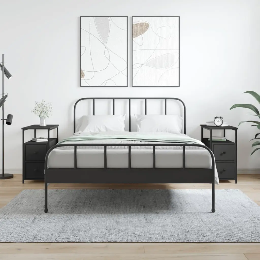 Vidaxl Bedside Cabinet Set Of 2 Black Engineered Wood, Iron