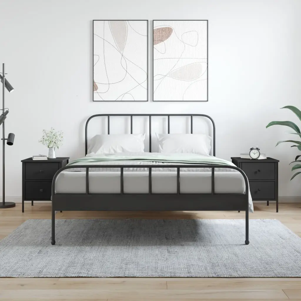 Vidaxl Bedside Cabinet Set Of 2 Black Engineered Wood, Iron Compact