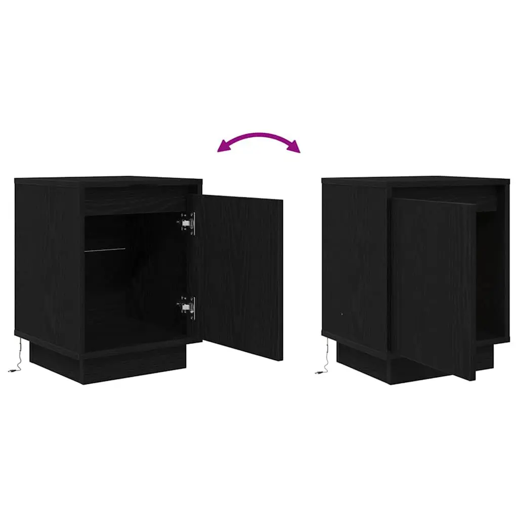 This bedside cabinet set is a smart solution for bedside storage, featuring modern LED lighting that creates a friendly atmosphere. With a sleek black finish and minimalist design, they fit right into contemporary bedroom styles while offering convenient storage. Stylish Design: The smooth black surface and matte finish ensure these cabinets look fab in any bedroom. They complement a range of styles, making them a versatile addition to your home. Handy LED Lighting: The integrated RGB LED lights create a dynamic look and can be controlled via remote for added convenience. Good Storage Space: Each cabinet features two roomy drawers, perfect for stashing books, personal items, or bedtime essentials. They keep your space tidy and organized. Durable and Tough: Made from engineered wood, these cabinets are built to last, offering a smooth finish that’s easy to clean and maintain over the years. Just The Right Size: Measuring 15.0 x 13.4 x 19.7 in, these cabinets are compact enough to fit nicely between beds or next to sofas, keeping your space looking neat and stylish.