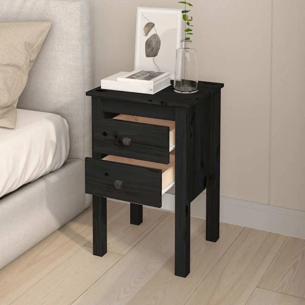 Vidaxl Bedside Cabinet Set Of 2 Black Solid Pine Wood Compact