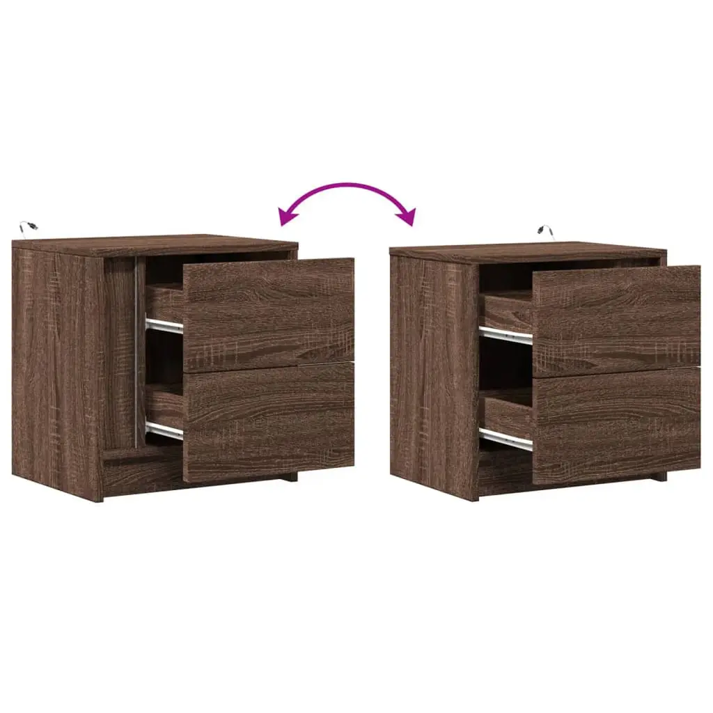 Vidaxl Bedside Cabinet Set Of 2 Brown Oak Engineered Wood Standard